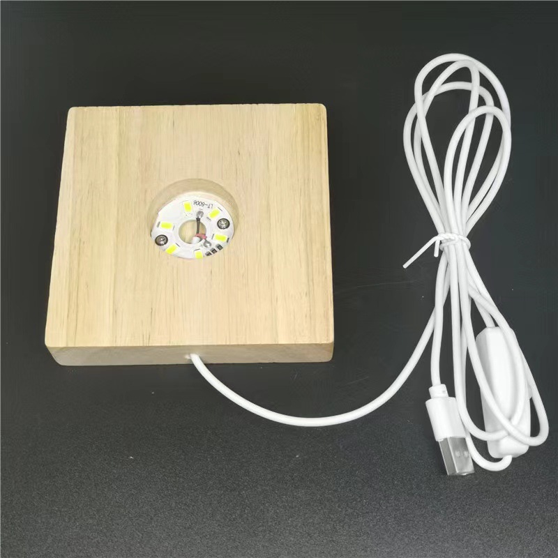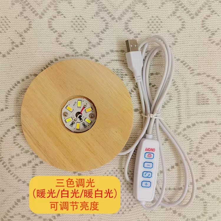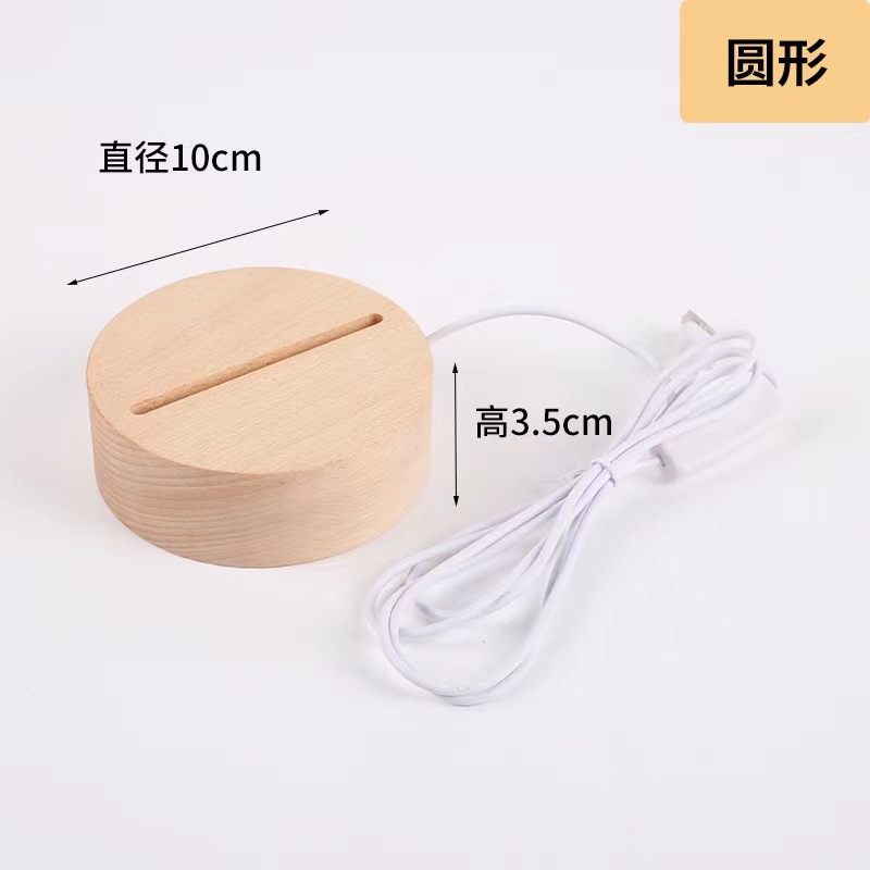 圆形水晶发光木底座 实木LED小夜灯底座香薰夜灯礼品摆件现货批发
