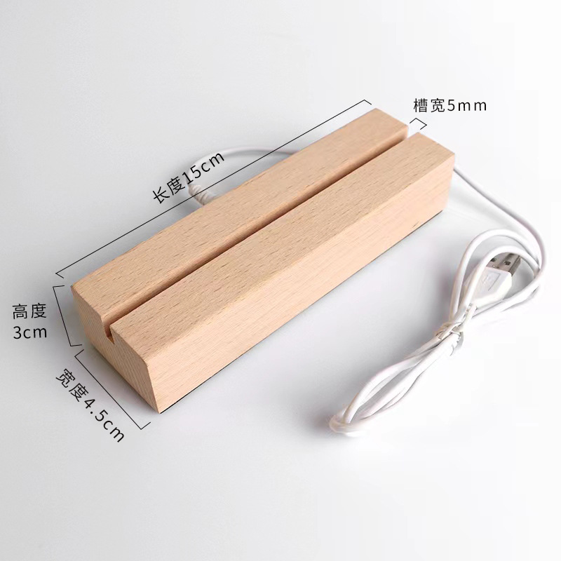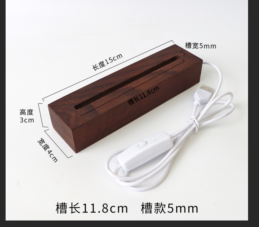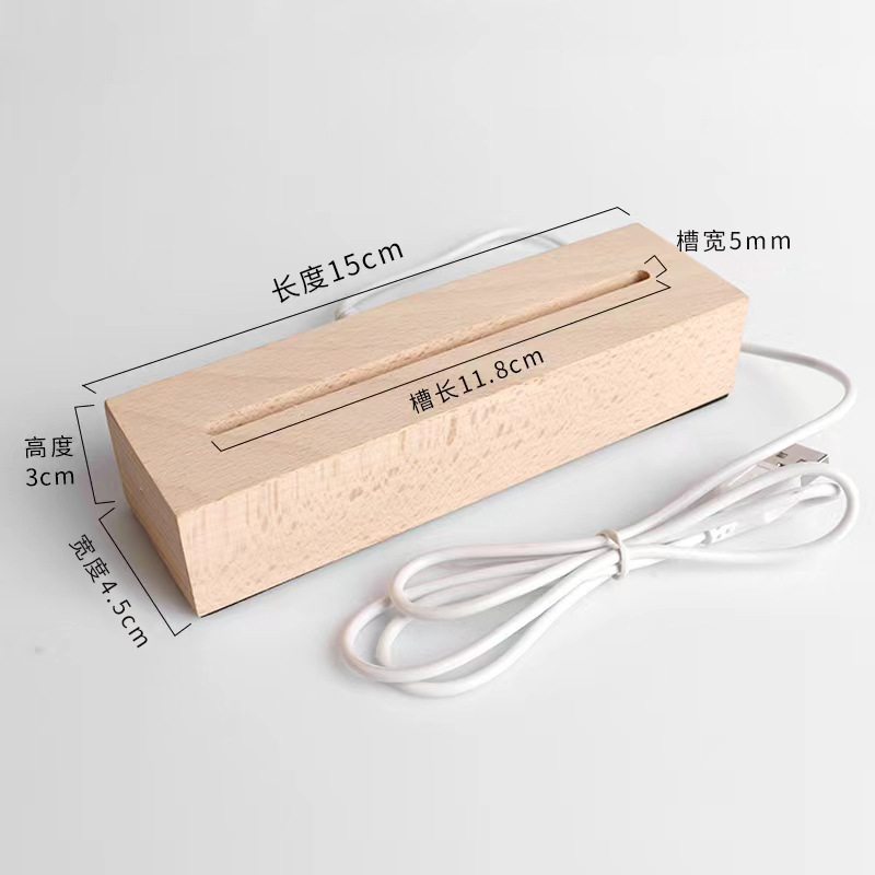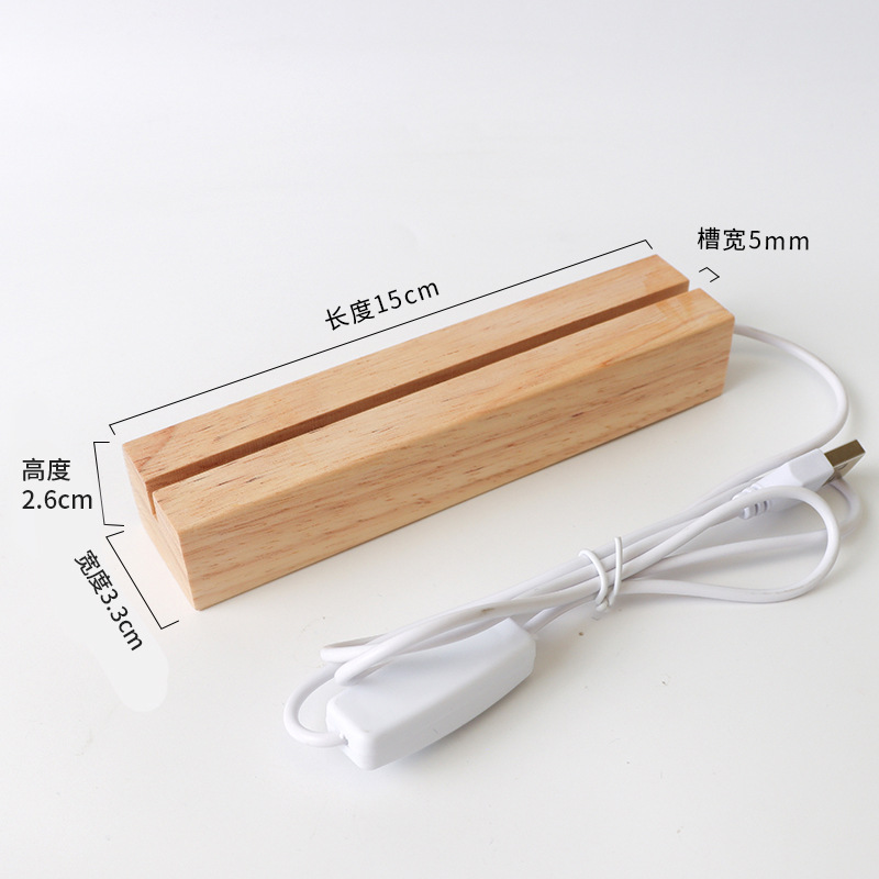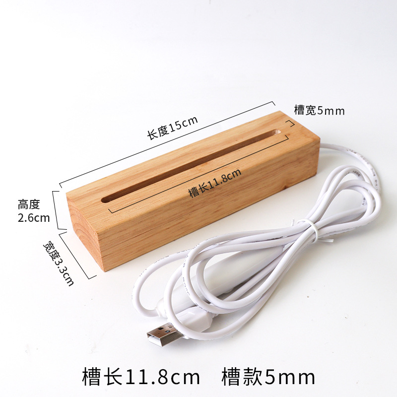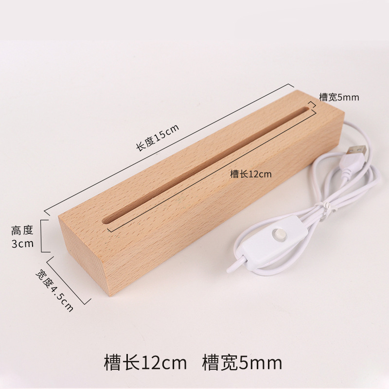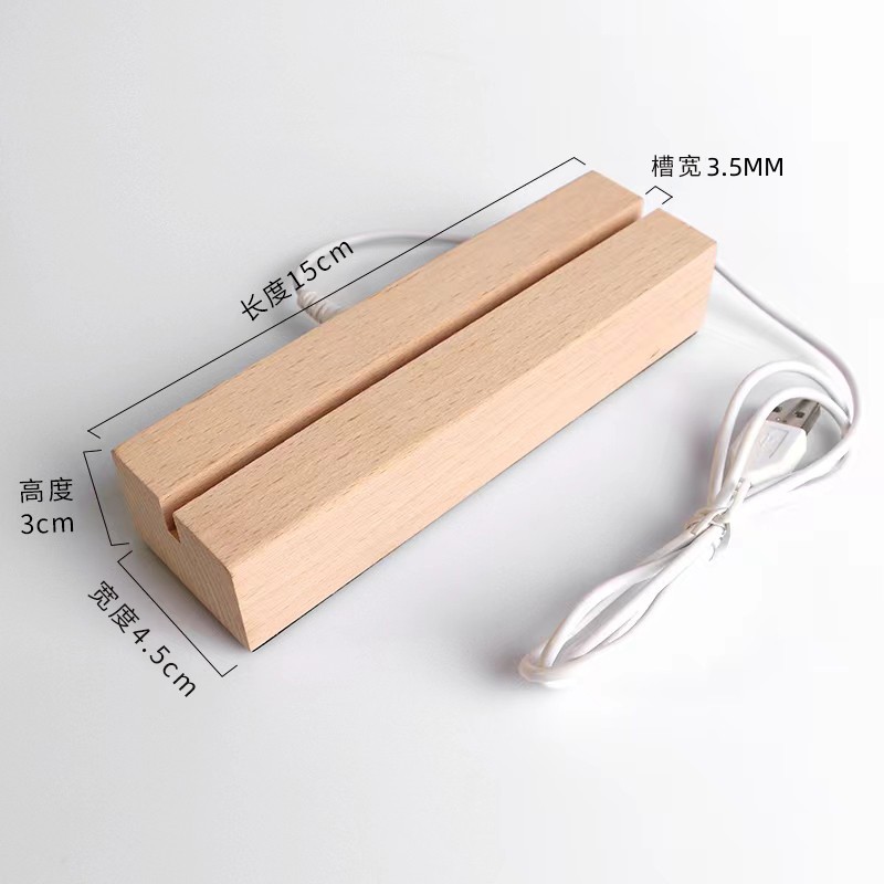 实木长方形小夜灯底座LED灯3.5MM槽亚克力灯饰实木长方条发光底座