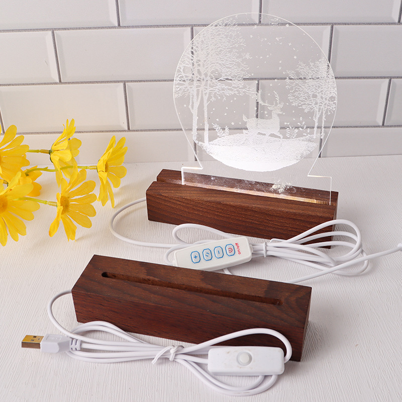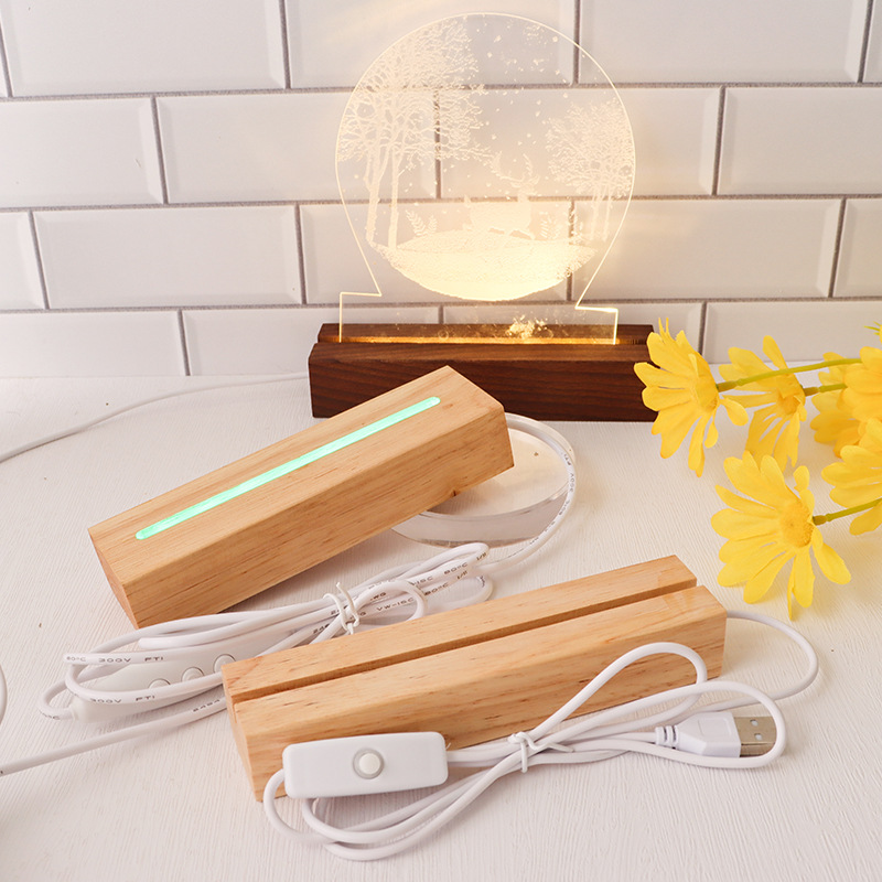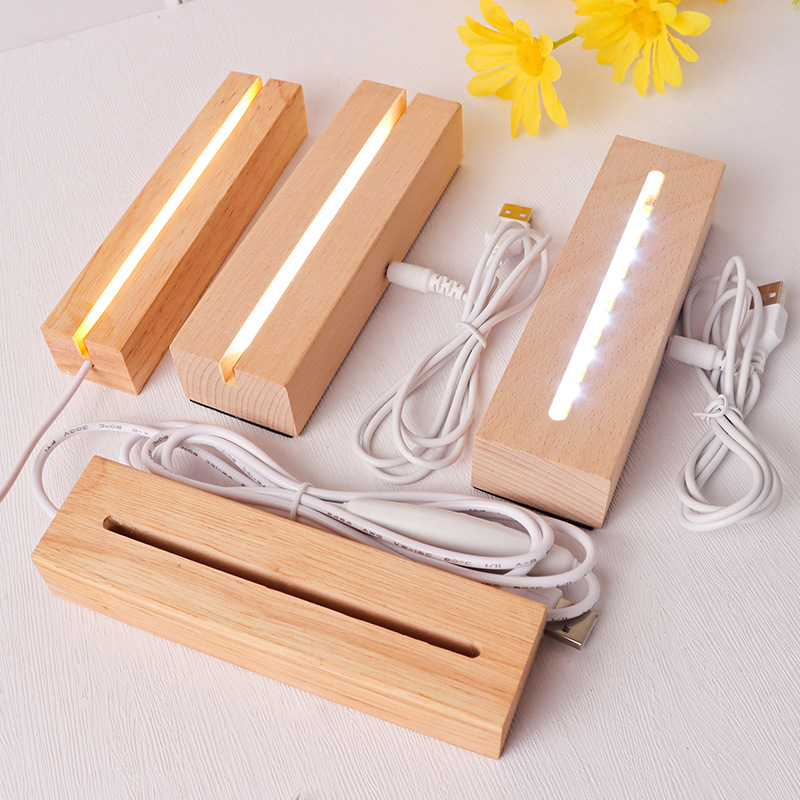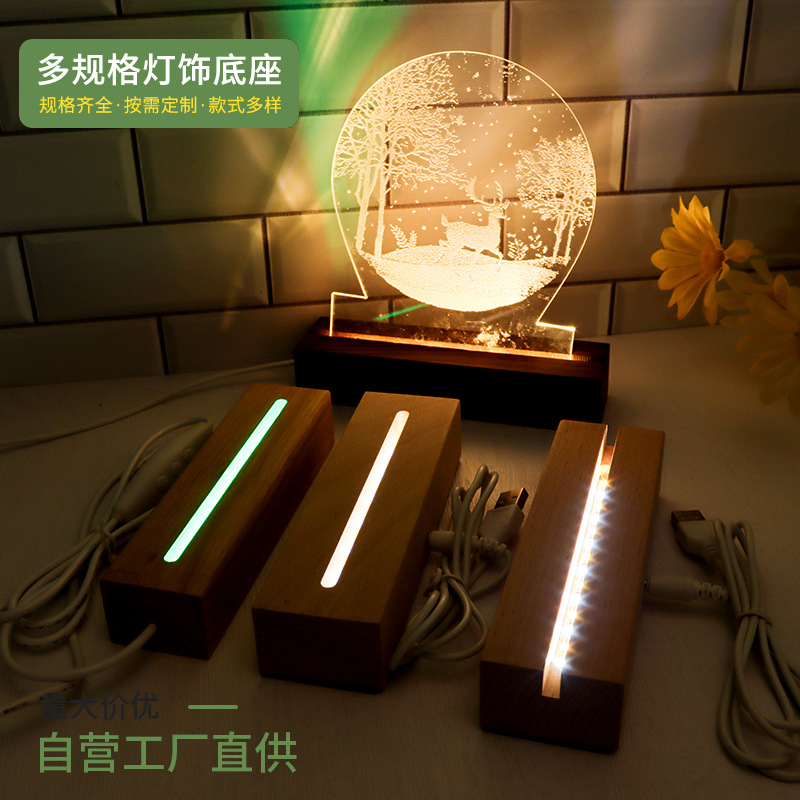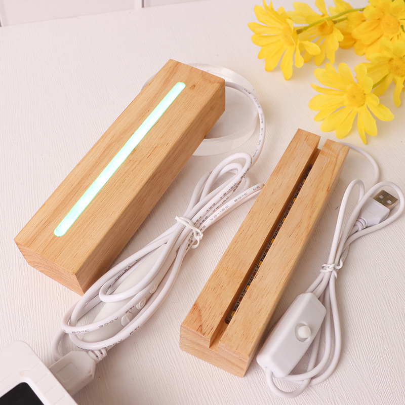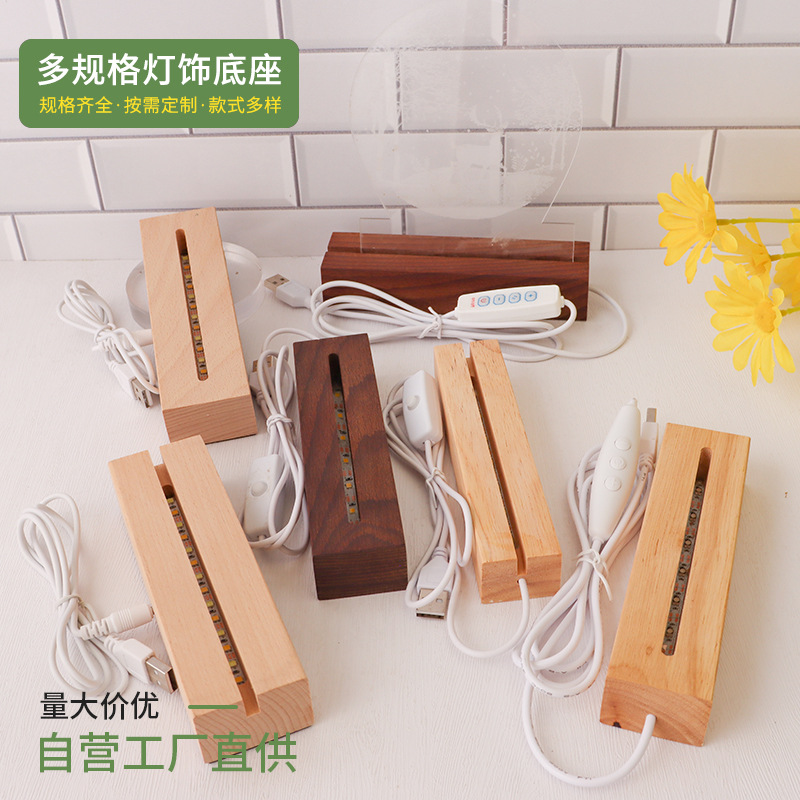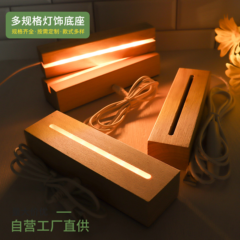 实木长方形小夜灯底座LED灯3.5MM槽亚克力灯饰实木长方条发光底座