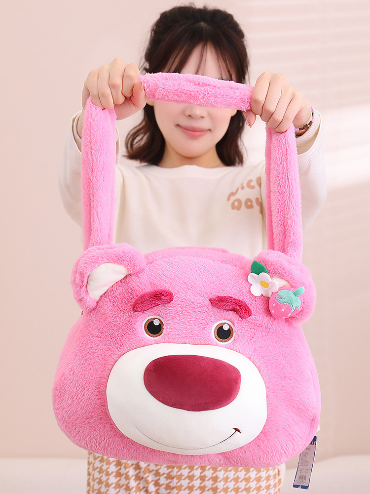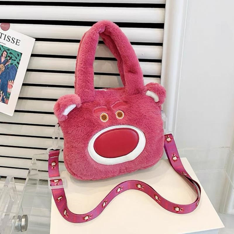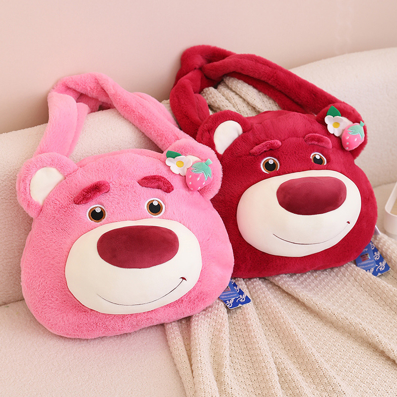 网红草莓熊包包毛绒斜跨包手提卡通儿童地推礼品玩偶女款礼物批发