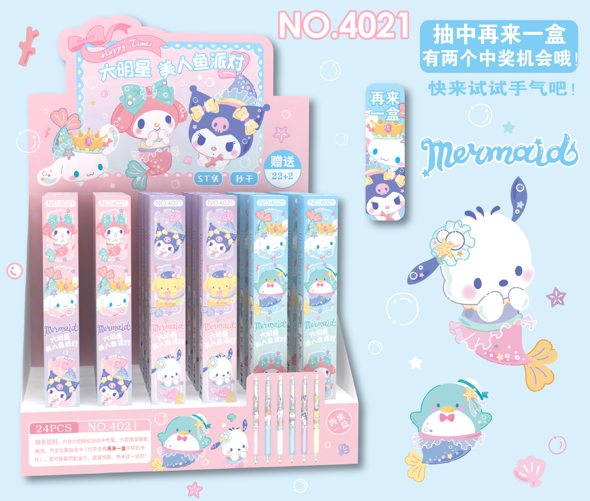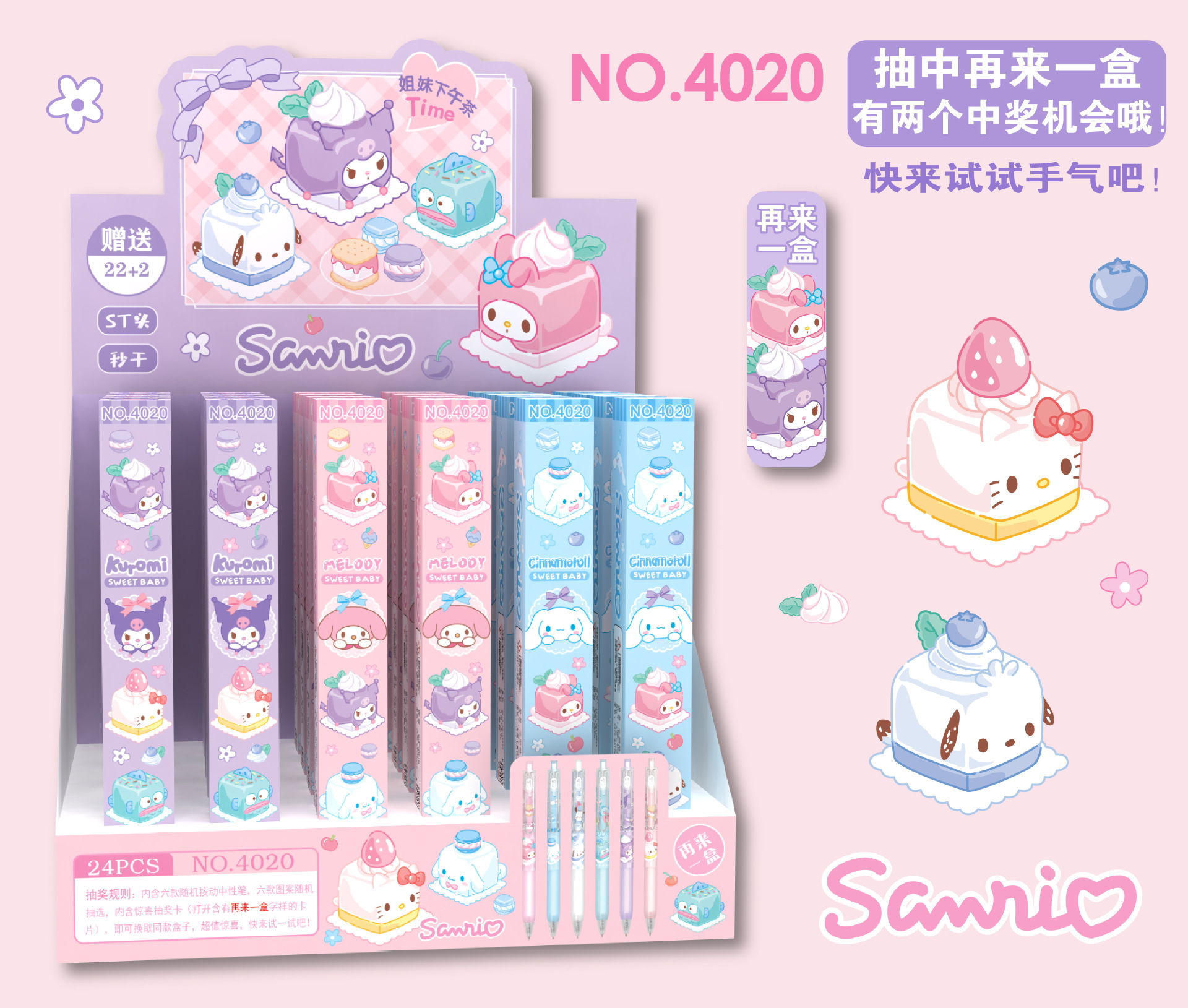 新款卡通三丽鸥抽奖盲盒笔中性笔再来一盒按动款水性笔拍22发24