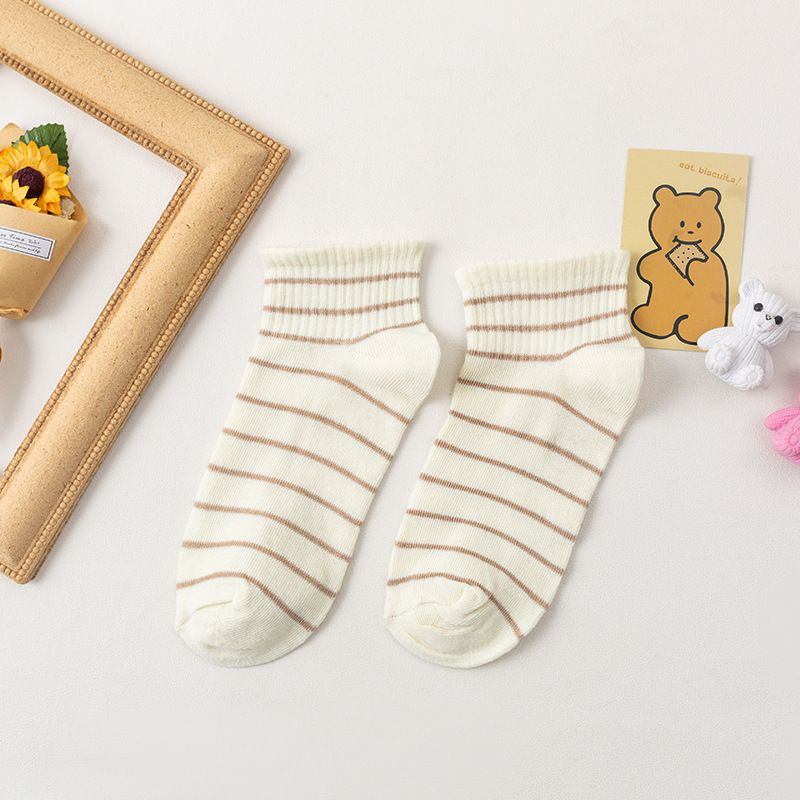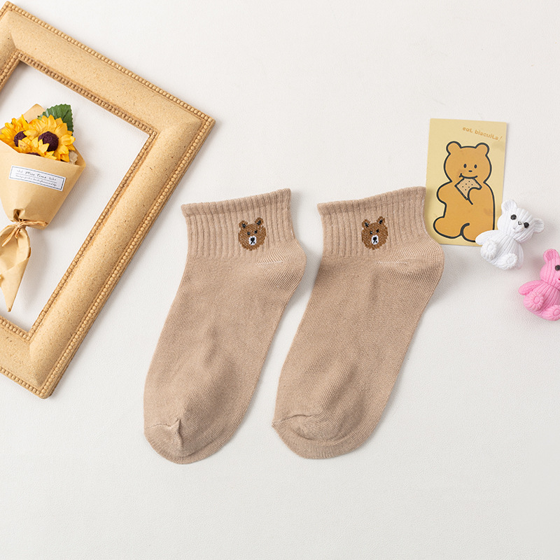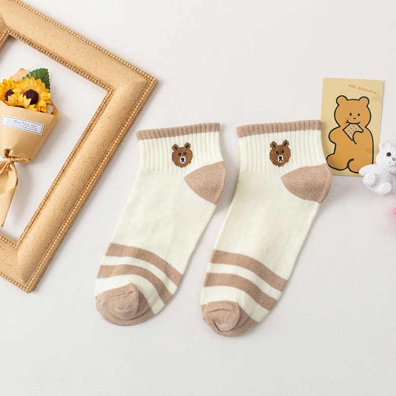 小熊船袜女士春秋季ins日韩可爱拼色短袜子批发学生短筒小中筒袜