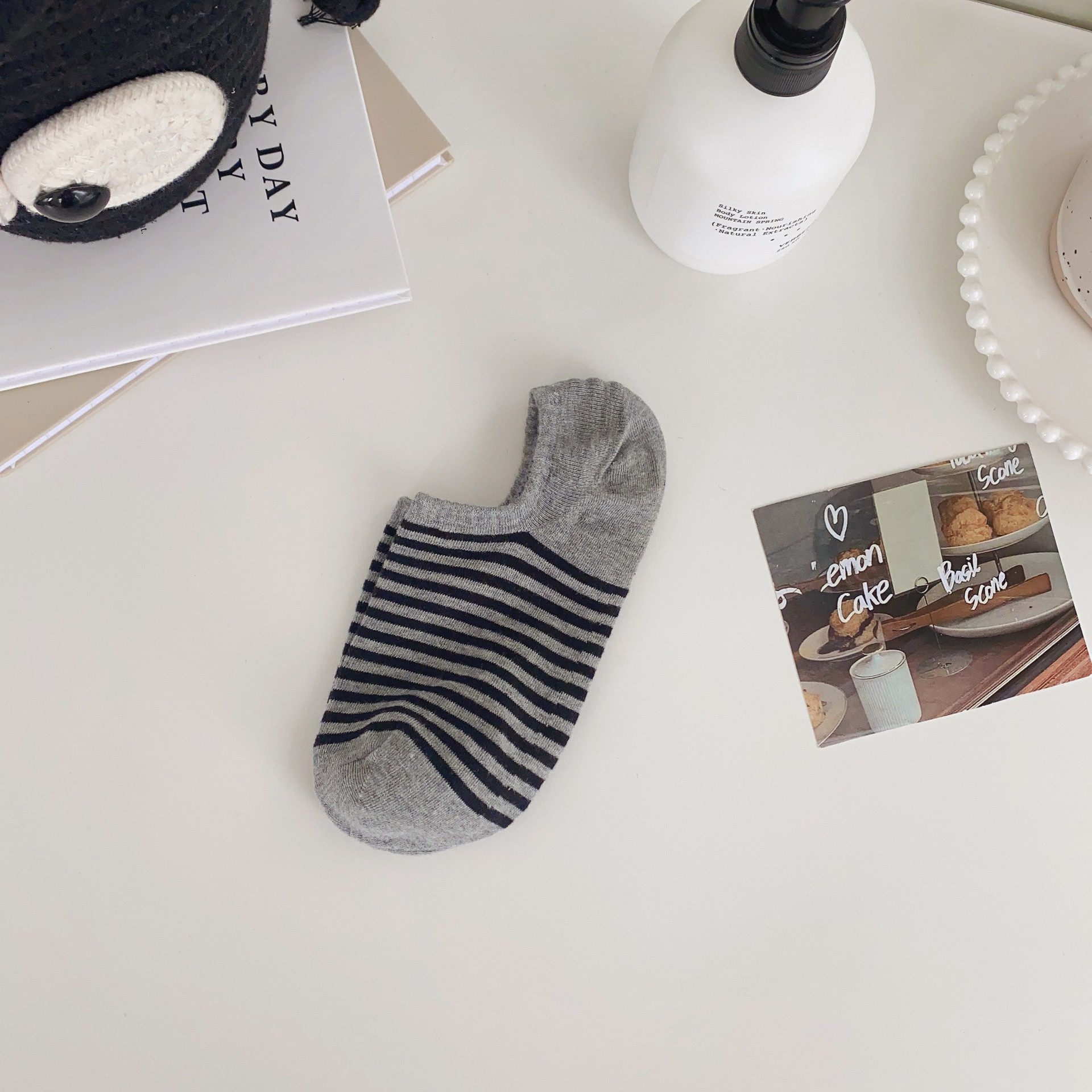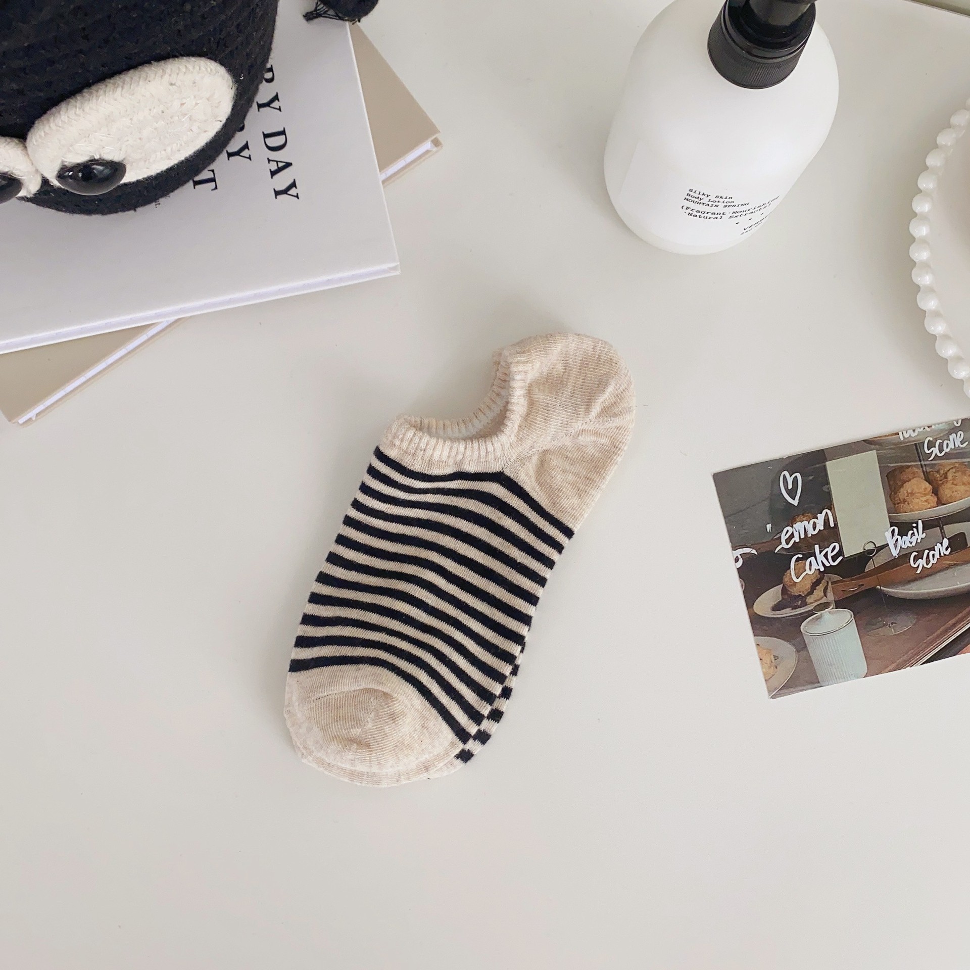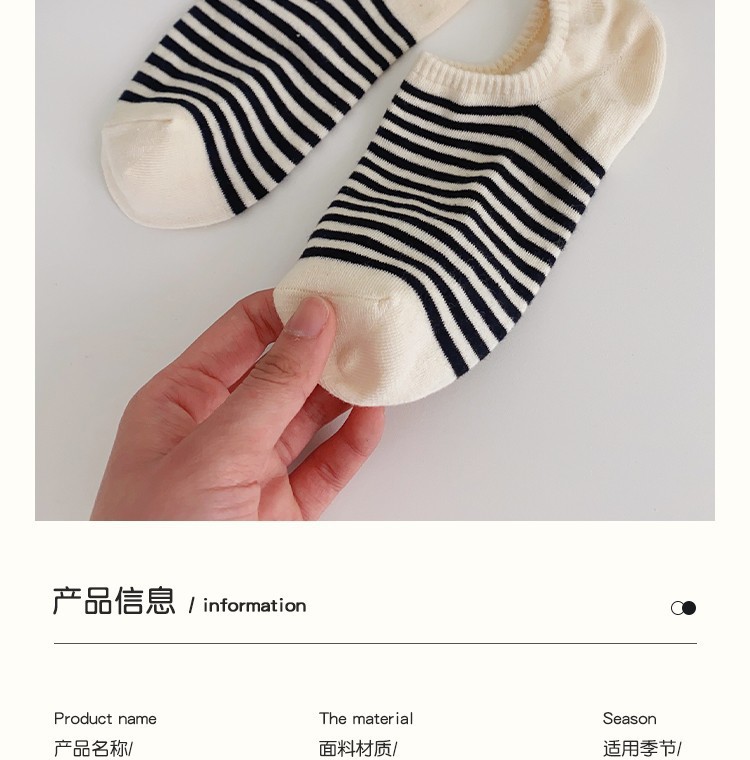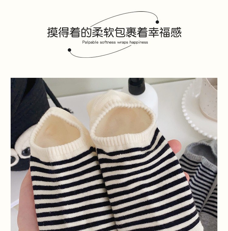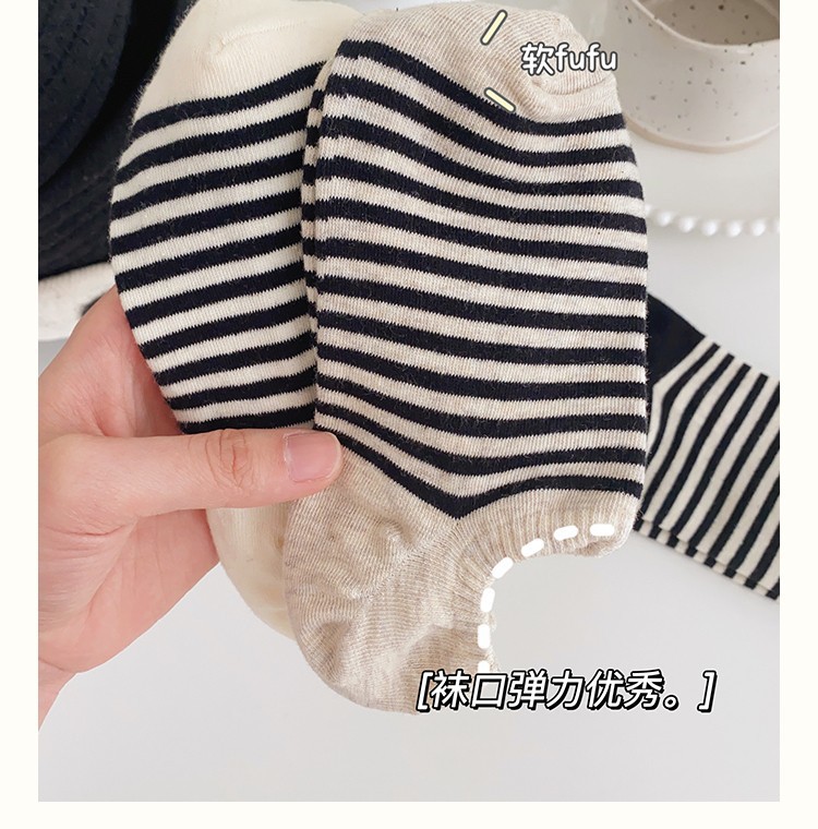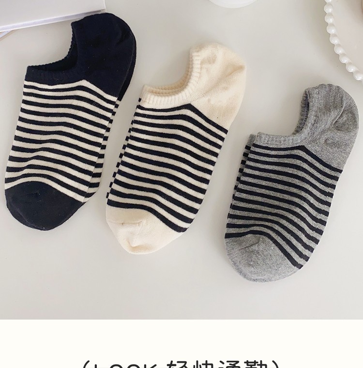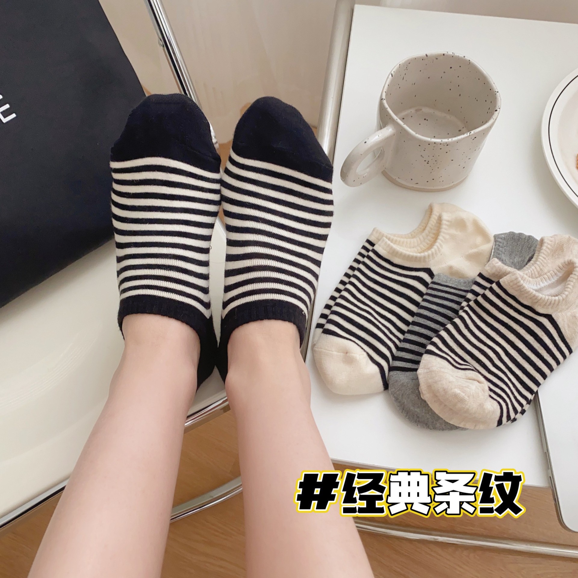 条纹袜子女短袜夏季薄款日系运动春天防滑不掉跟低帮短筒船袜sock