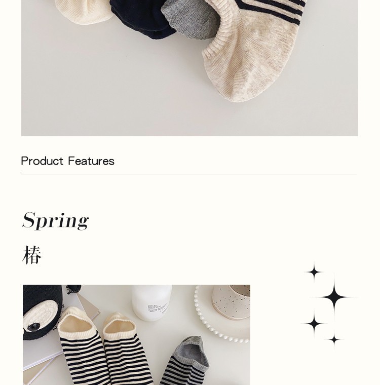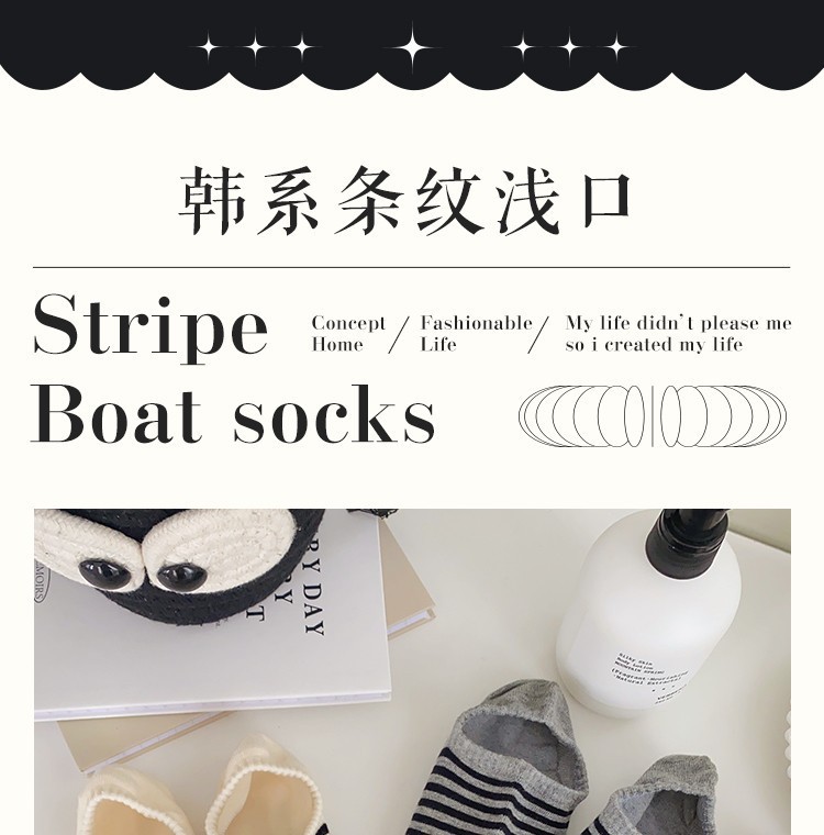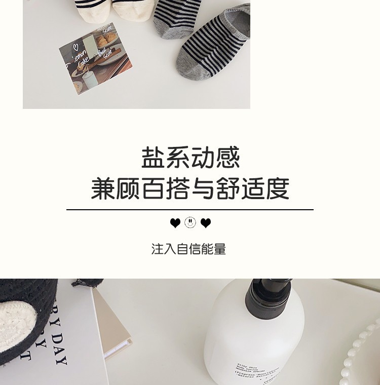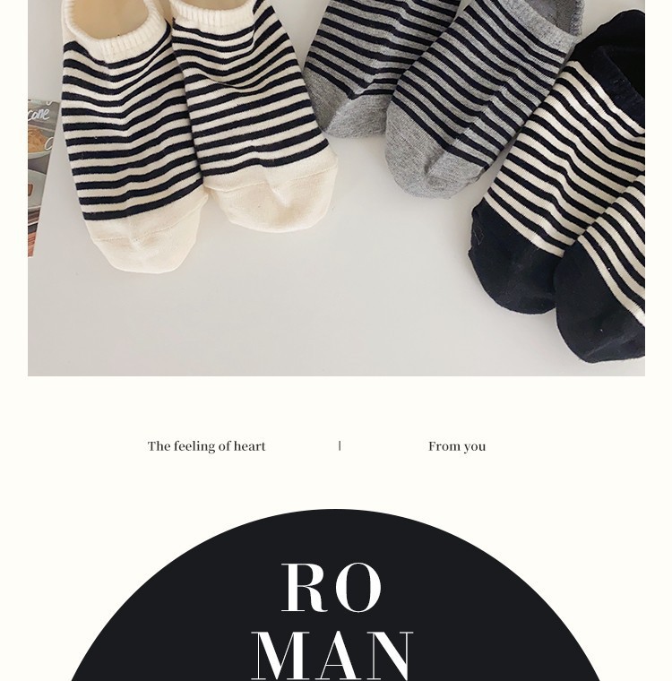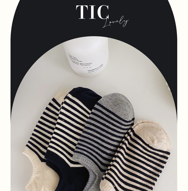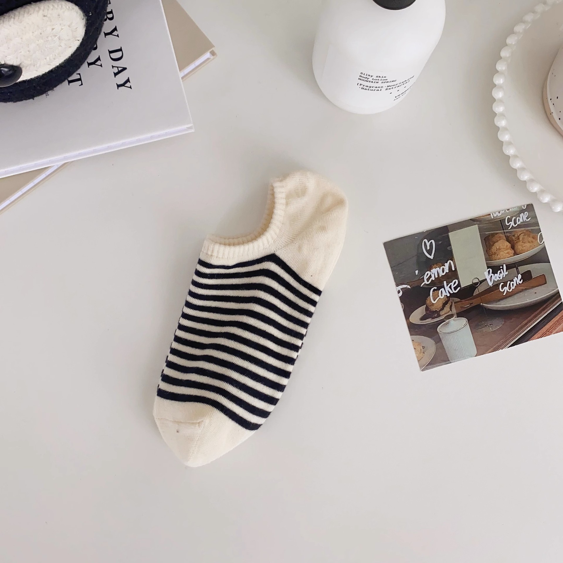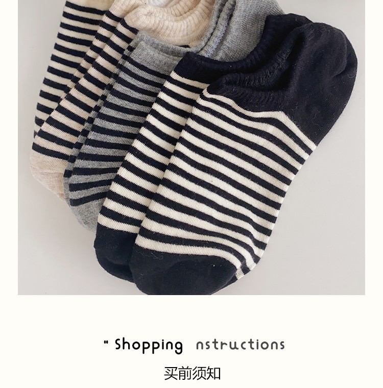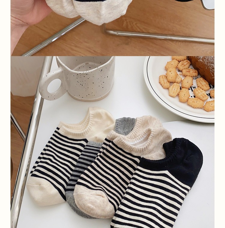 条纹袜子女短袜夏季薄款日系运动春天防滑不掉跟低帮短筒船袜sock