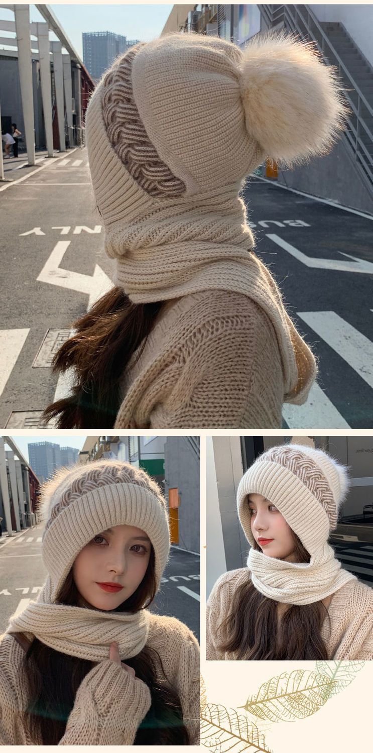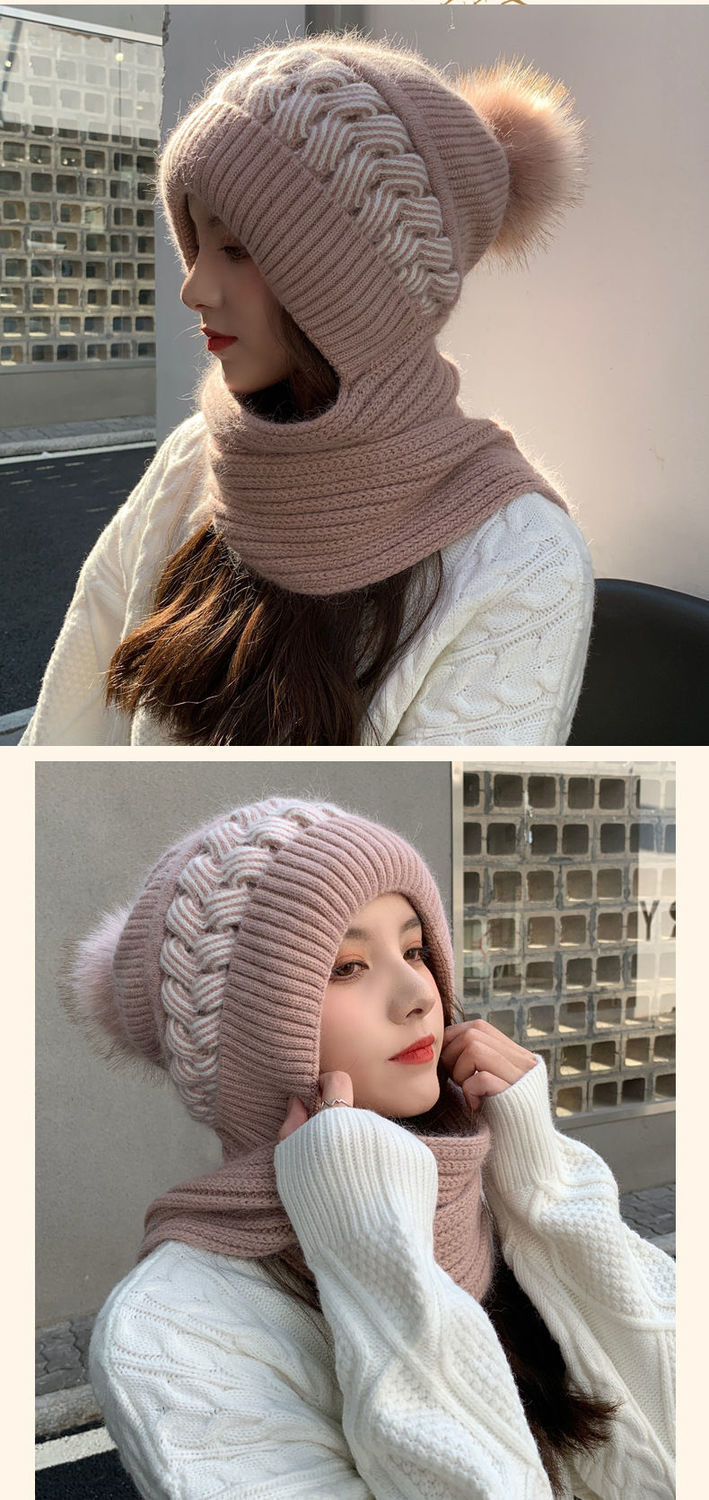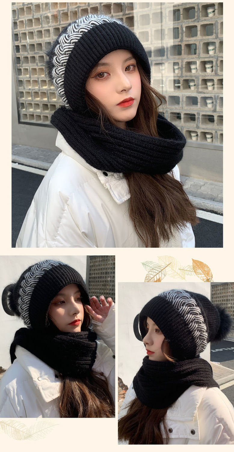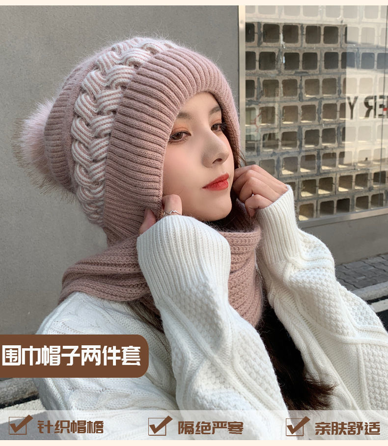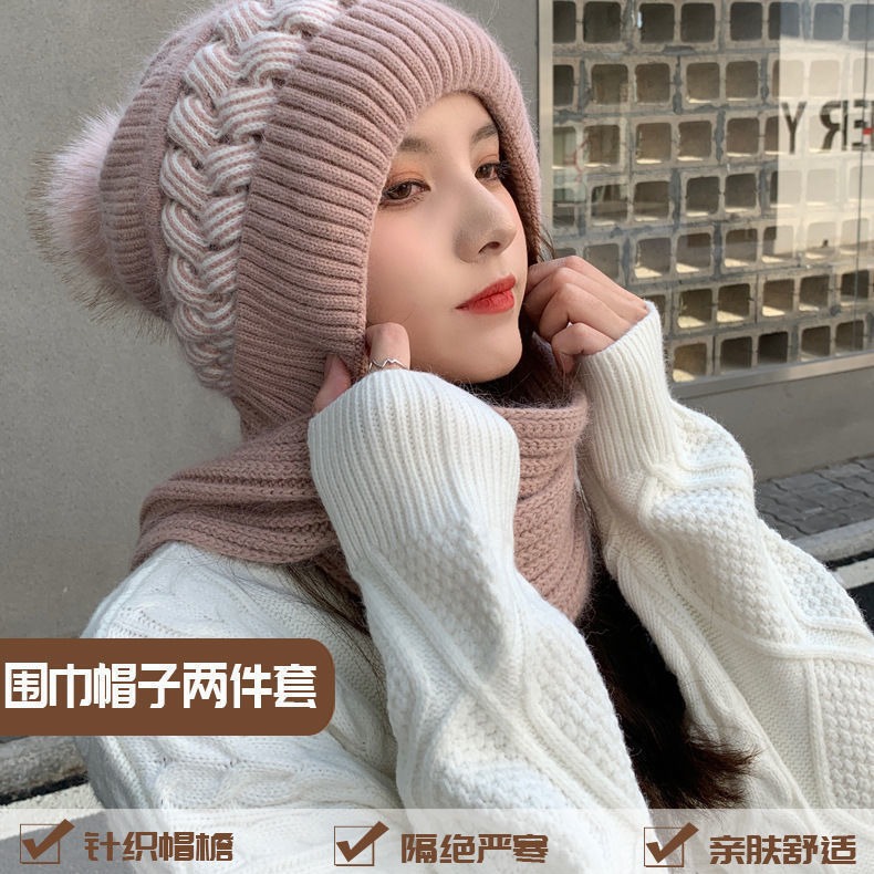ins帽子围巾套冬季保暖针织骑行护耳帽女加绒可爱防寒时尚帽批发
