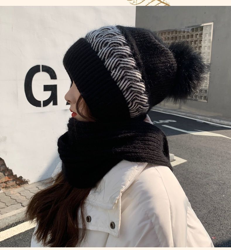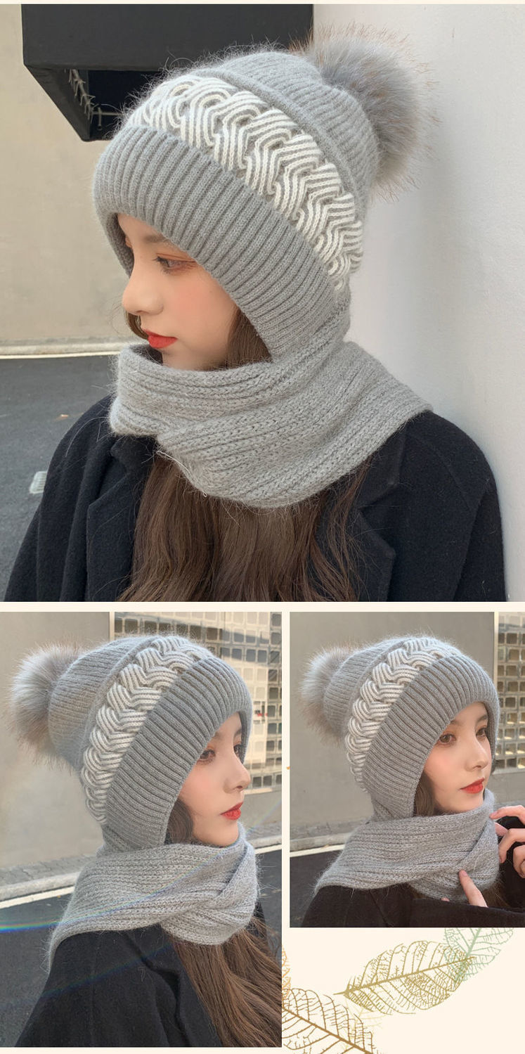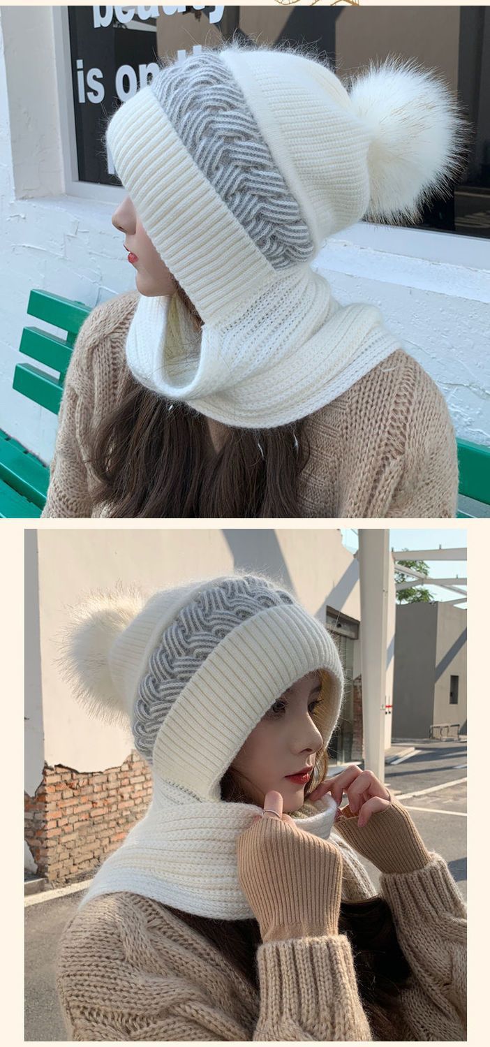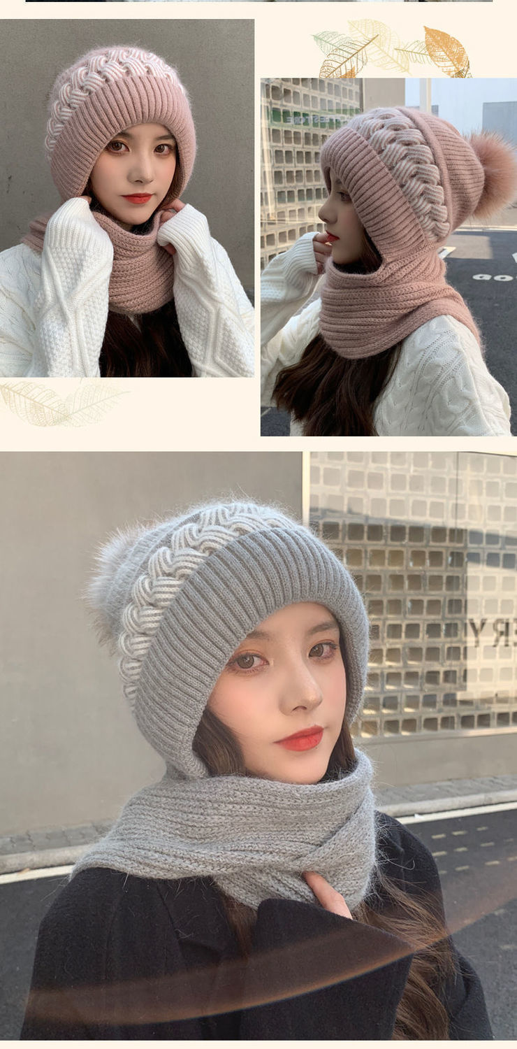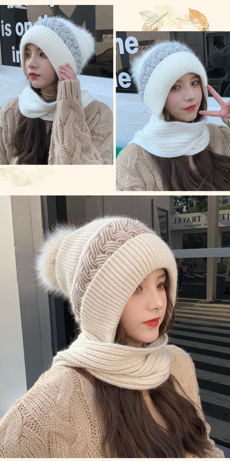 ins帽子围巾套冬季保暖针织骑行护耳帽女加绒可爱防寒时尚帽批发