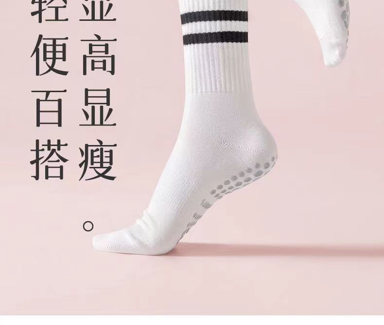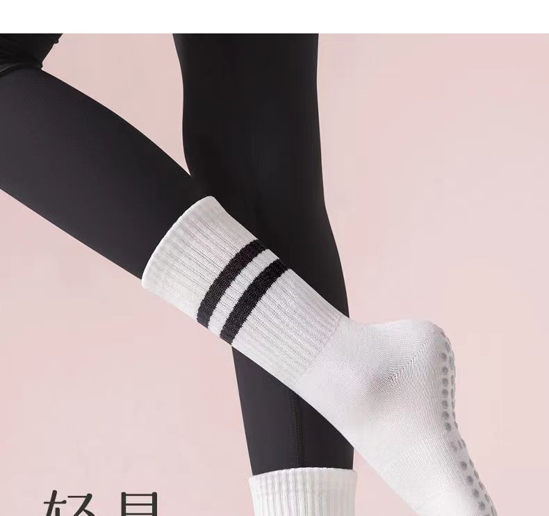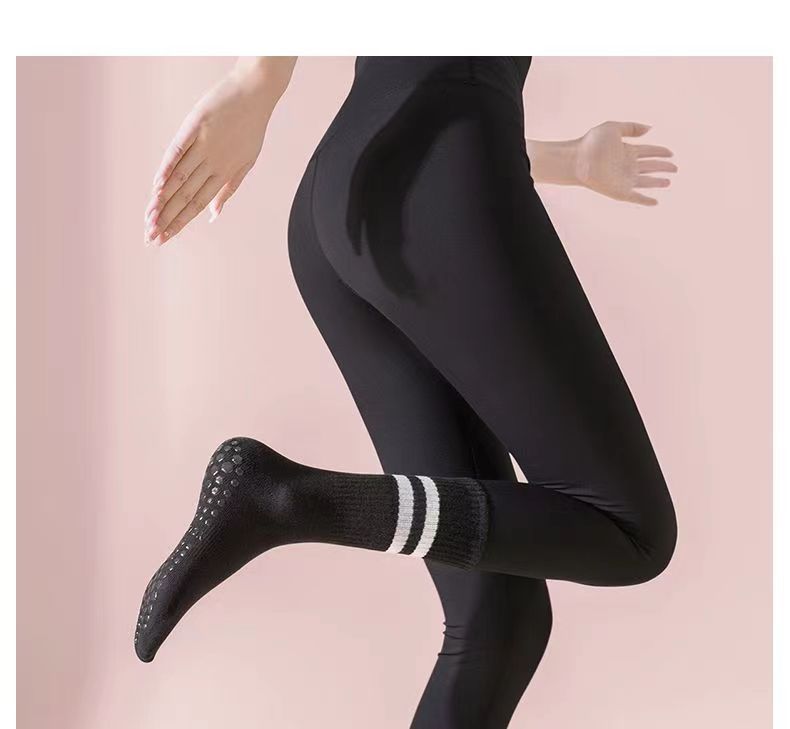 新款专业防滑瑜伽袜普拉提袜小腿袜女子中长筒运动袜纯色地板袜子