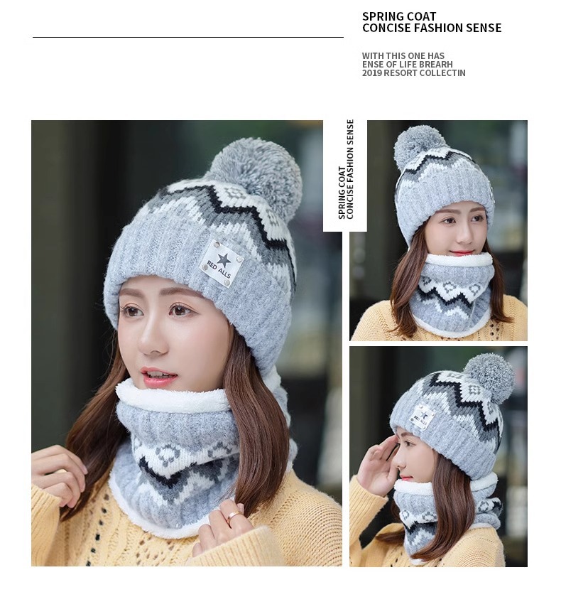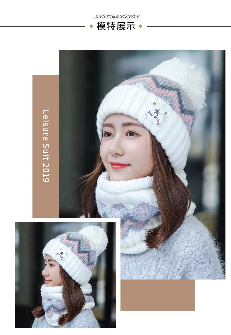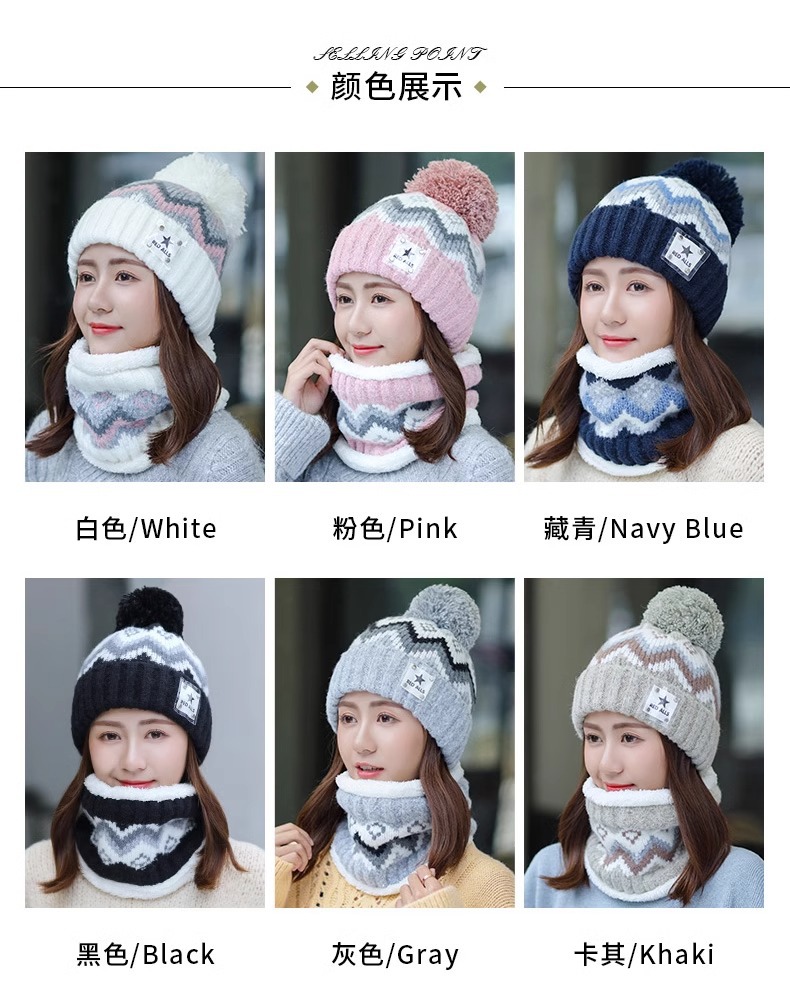 秋冬帽子围巾一体可爱骑车加绒针织保暖帽百搭冬天毛线帽护耳围脖