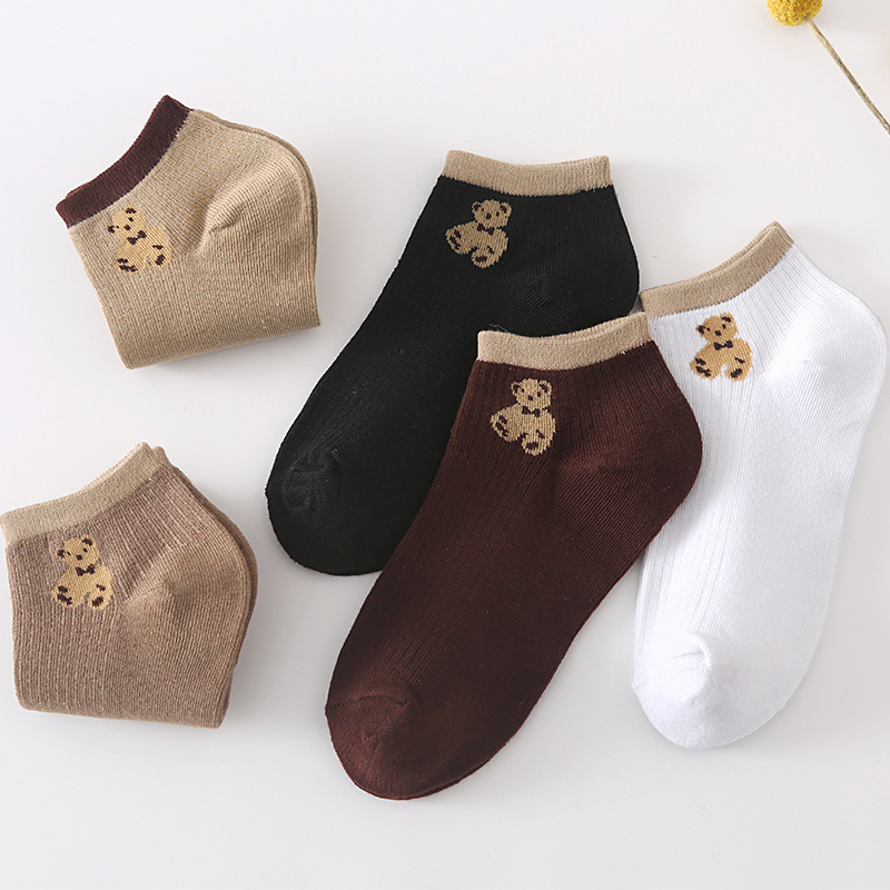 袜子女士休闲春夏可爱小熊日系船袜批发纯色薄款浅口ins潮女袜