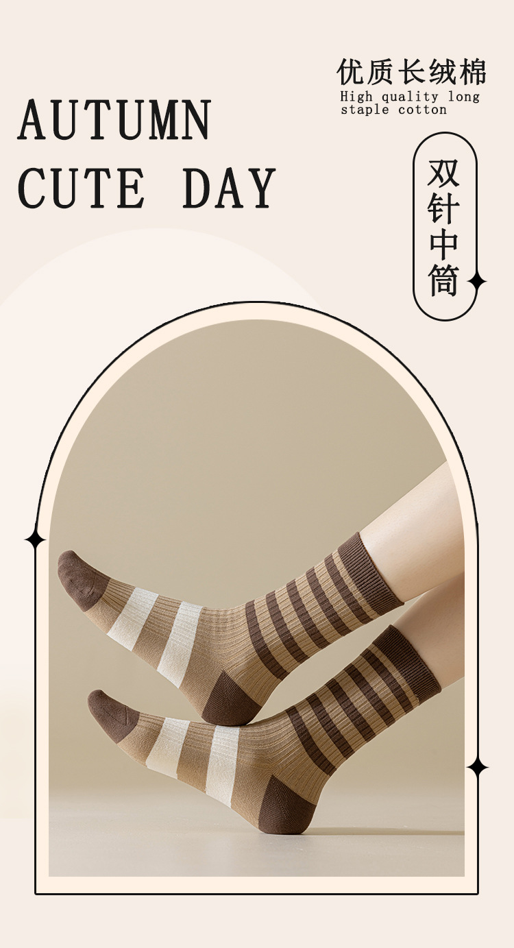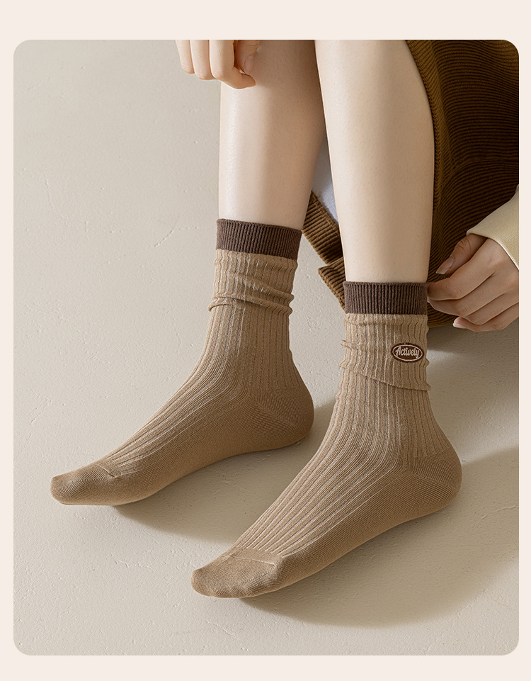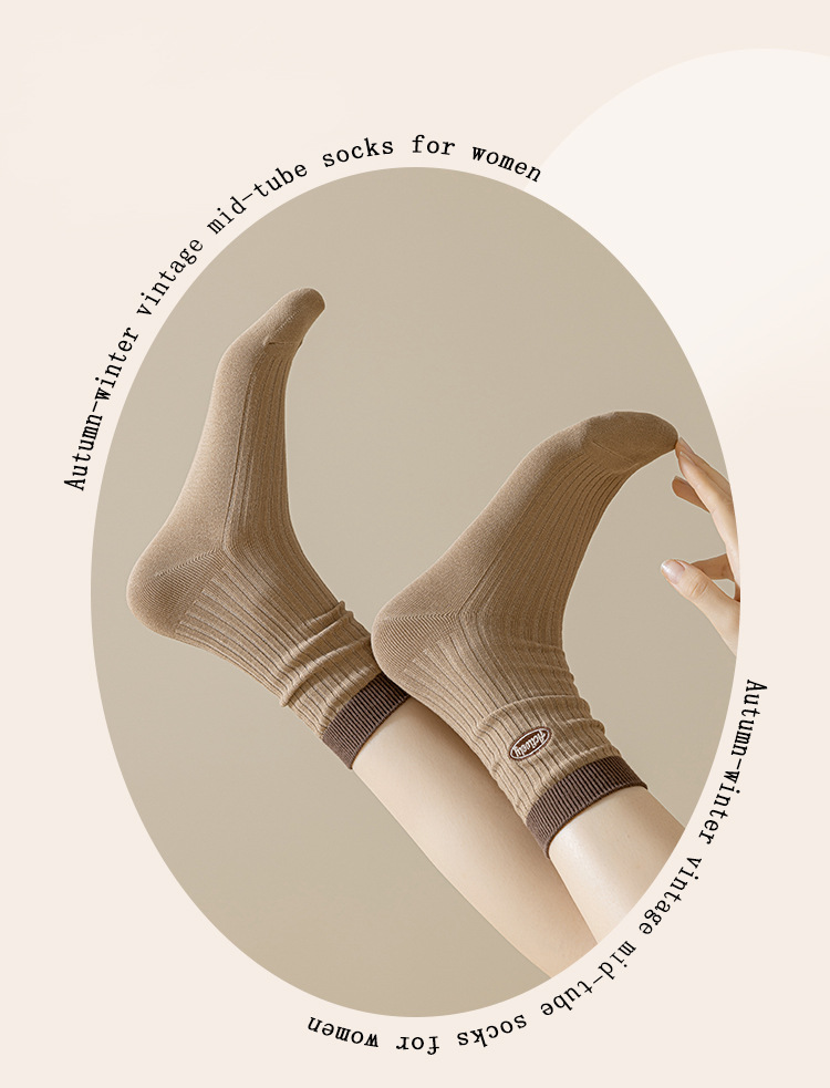 双针袜子女春秋中筒袜棉袜 女士美拉德复古刺绣长袜 诸暨女袜批发