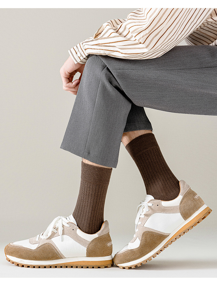 50g加厚中筒袜子男袜秋冬纯色棉袜 男士商务长筒袜 诸暨长袜批发
