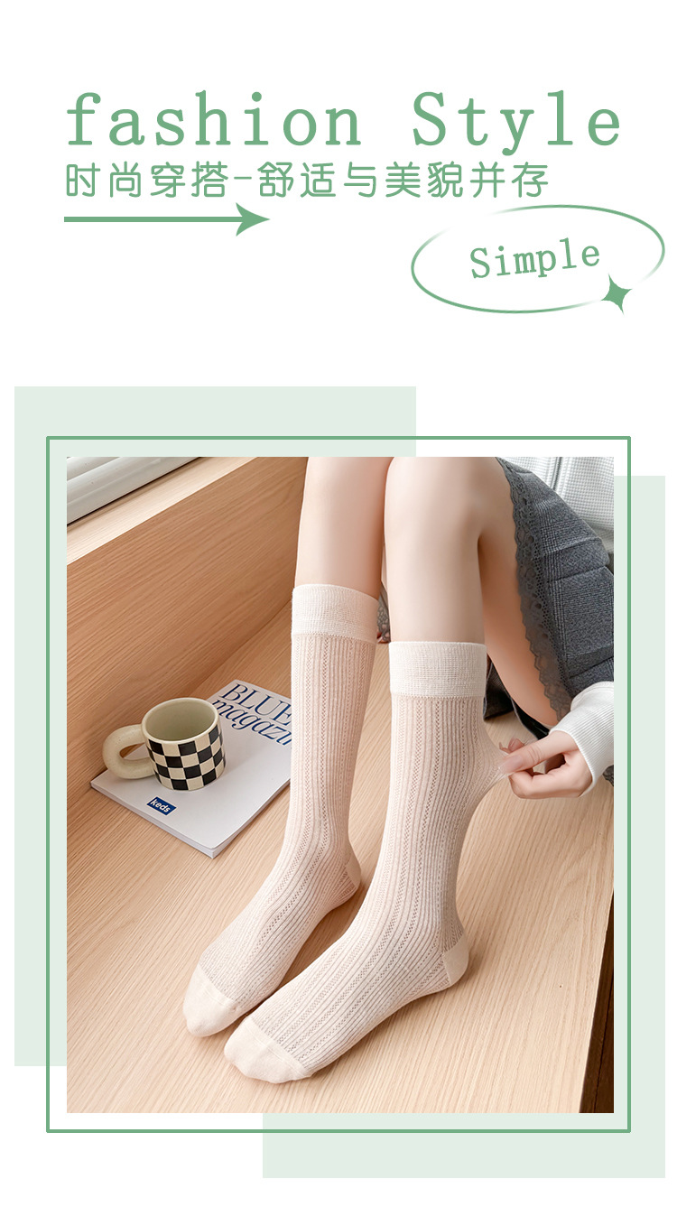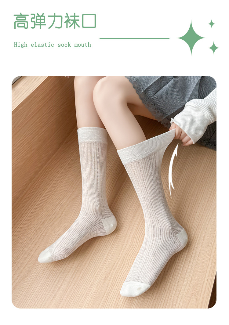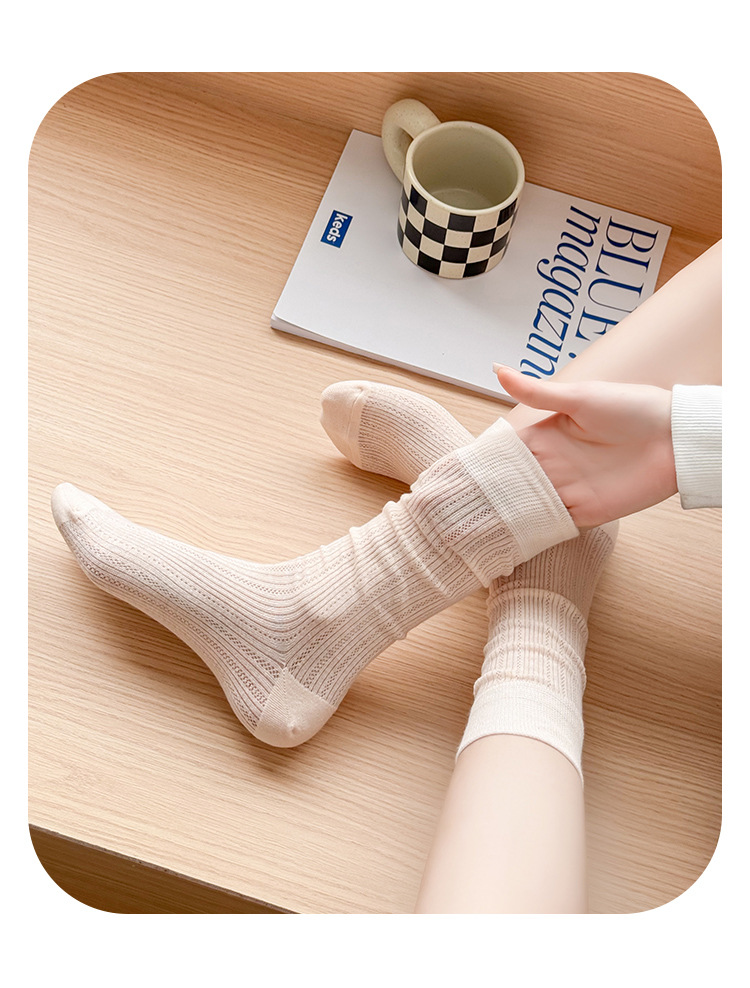 堆堆袜子女夏季薄款棉袜月子袜 女士百搭网眼透气松口小腿袜批发
