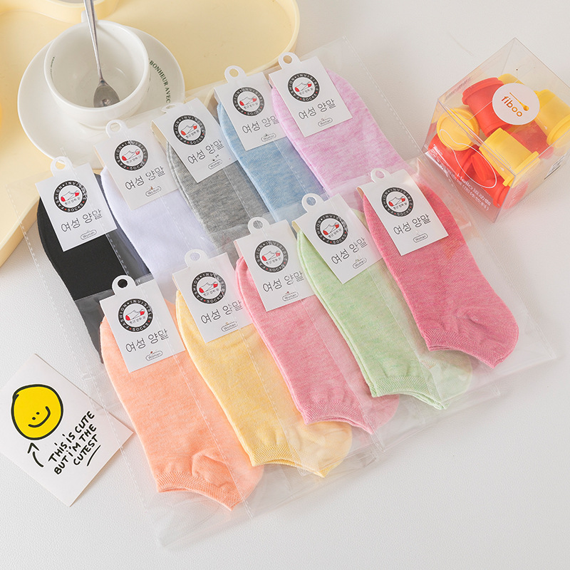 袜子女简约透气薄款短袜春夏季百搭彩棉袜独立包装袜子批发新款
