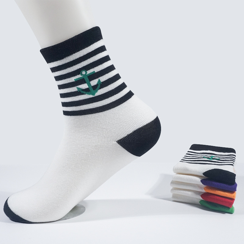 200针袜子女中筒棉袜秋冬季纯棉袜子拼色图案百搭透气休闲运动袜