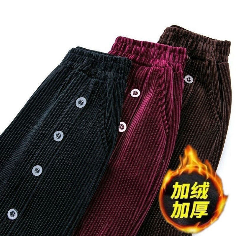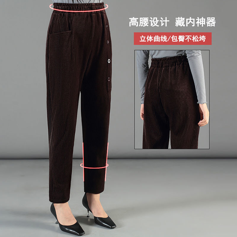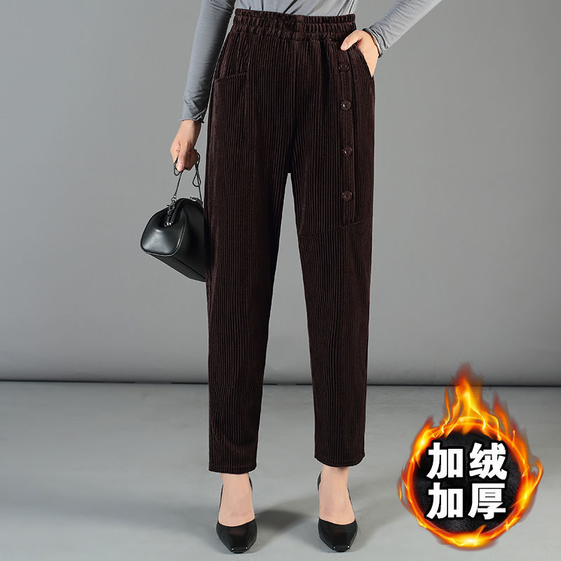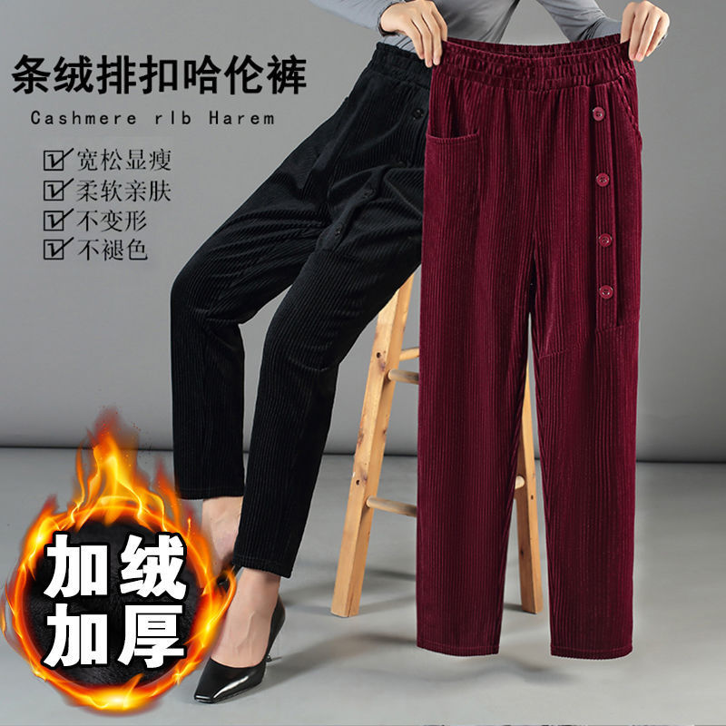 冬季灯芯绒哈伦裤女加绒裤子高腰宽松大码粗条绒女裤休闲裤妈妈裤