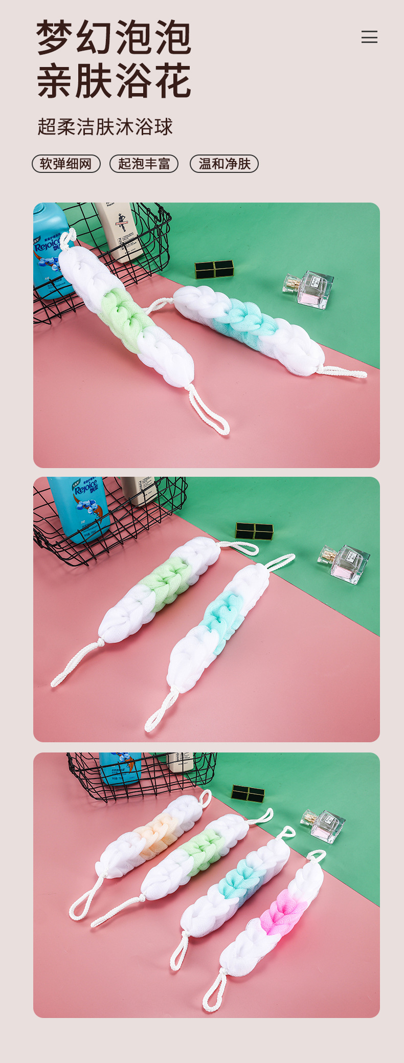 浴花沐浴条搓澡巾拉背条沐浴球起泡沫球耐用不散搓澡条浴花