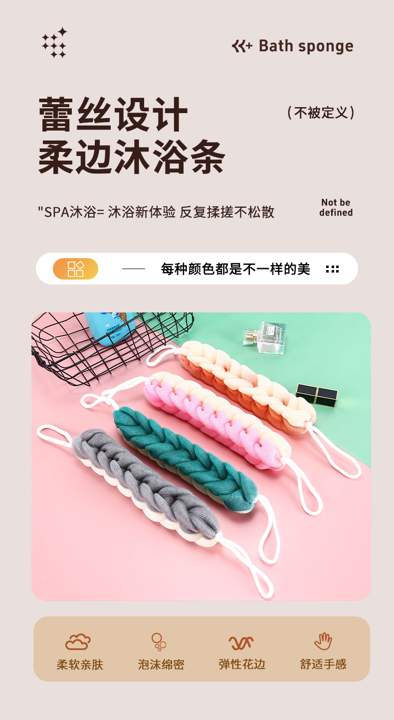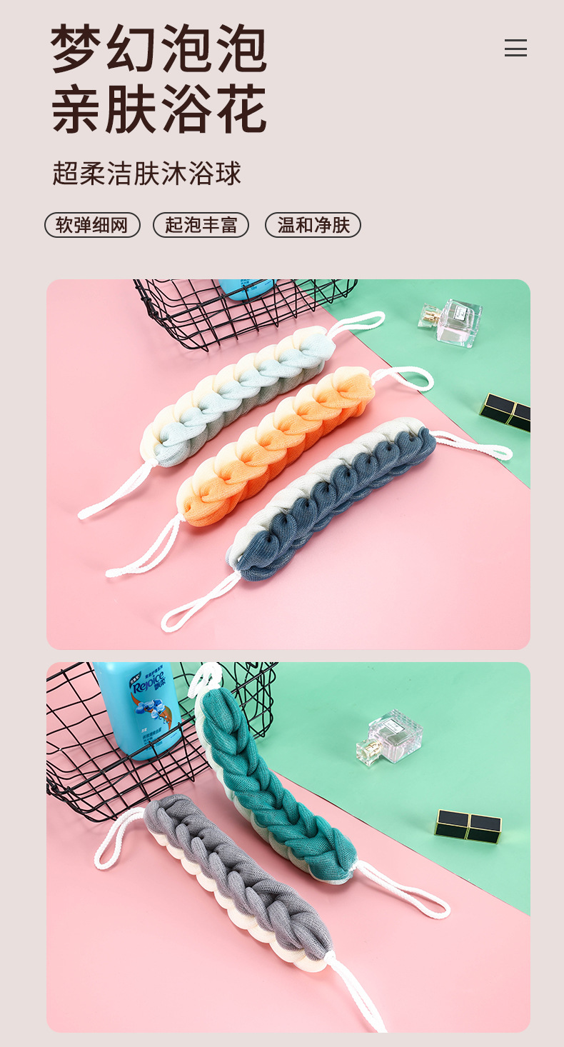 浴花球搓澡两用沐浴条不散耐用搓背条大号搓泥去污洗澡巾
