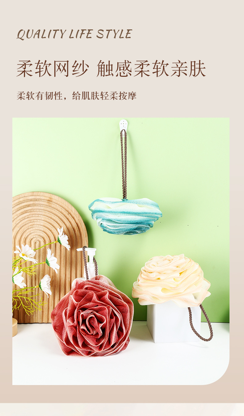 洗浴球玫瑰花型沐浴球洗澡不散搓澡沐浴花日系超柔可爱洗澡球