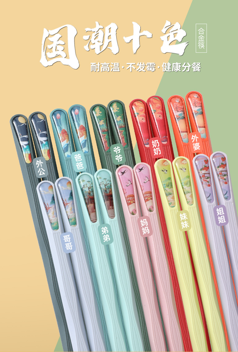 合金筷子家用彩色筷子一人一筷分餐筷高档筷子防霉家用筷子