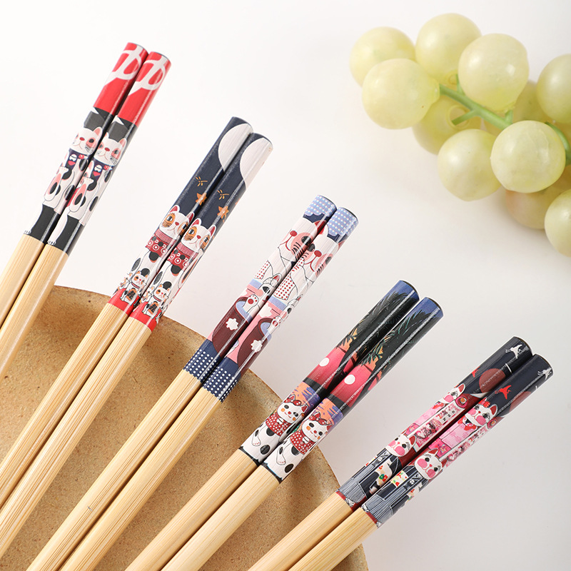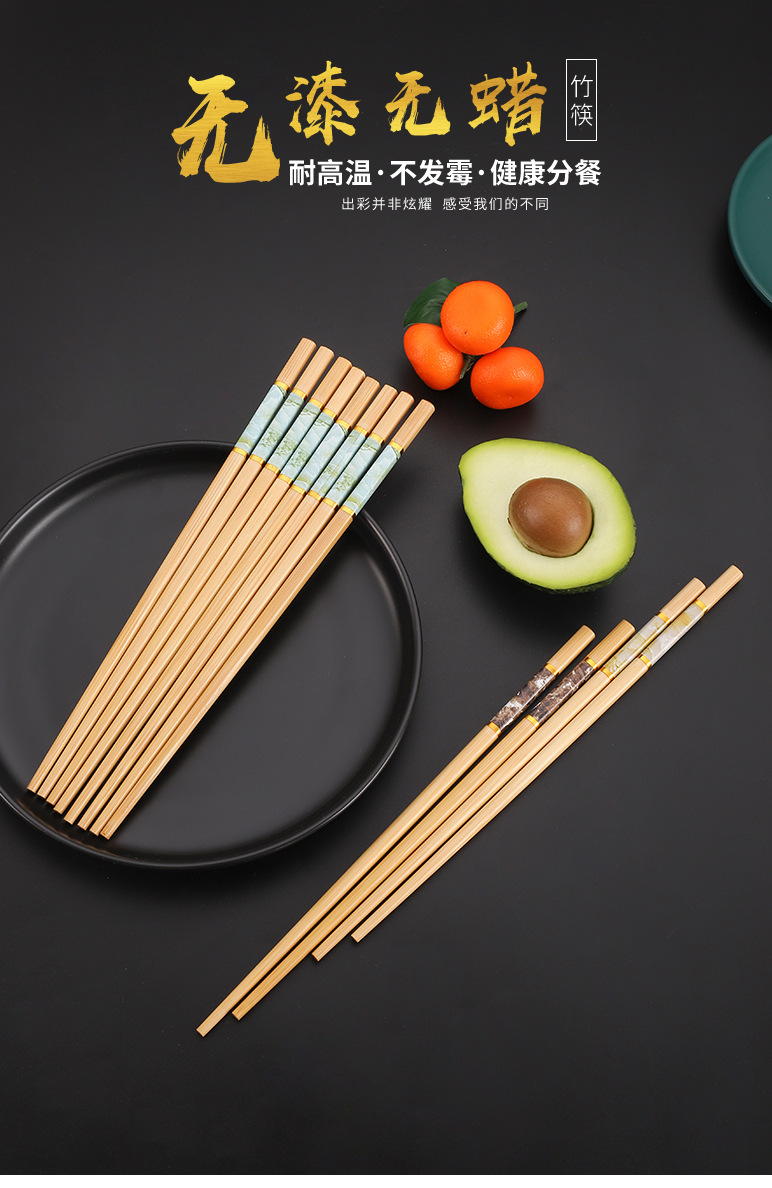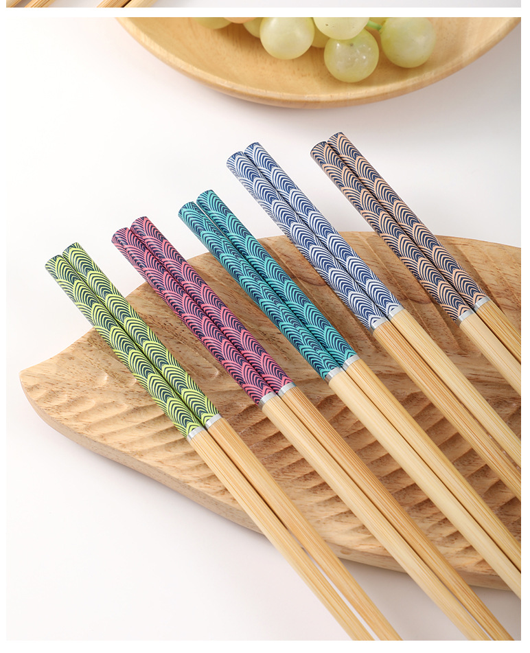 家用竹筷子高档防滑韩式印花竹木精品五色防霉筷子寿司筷一人一筷