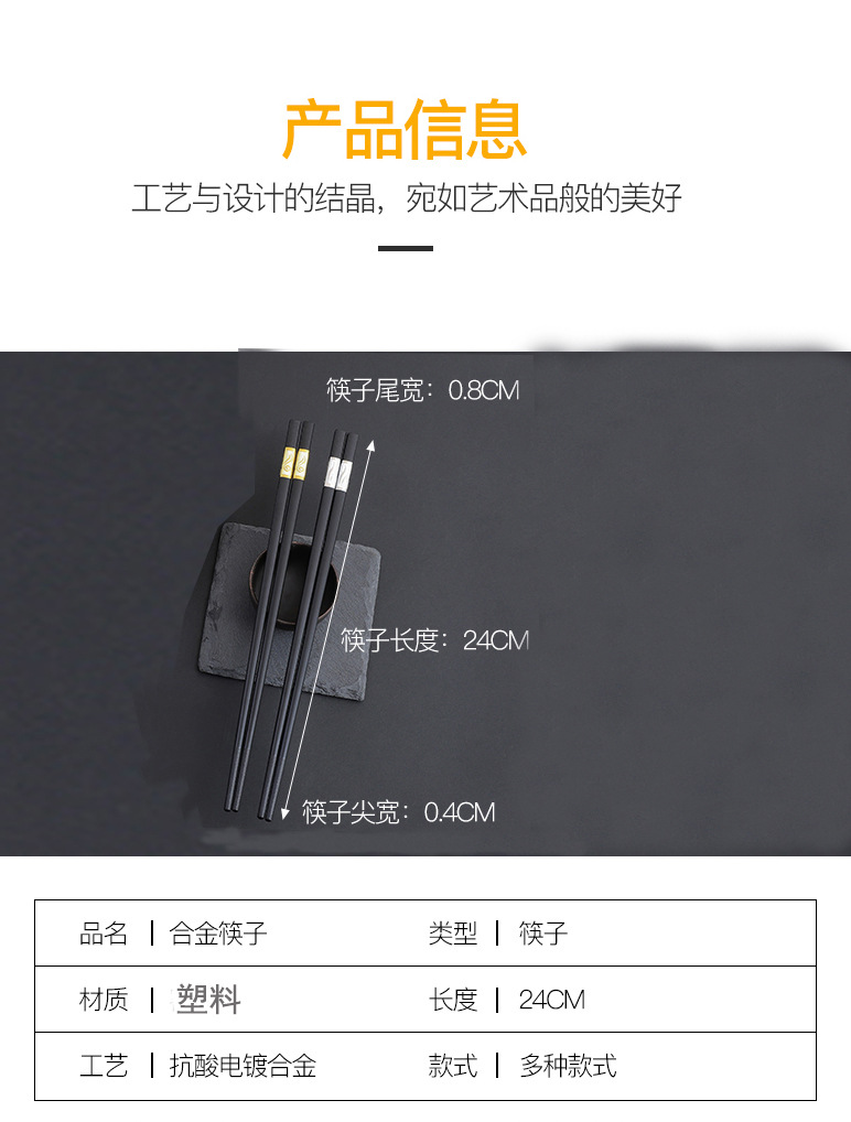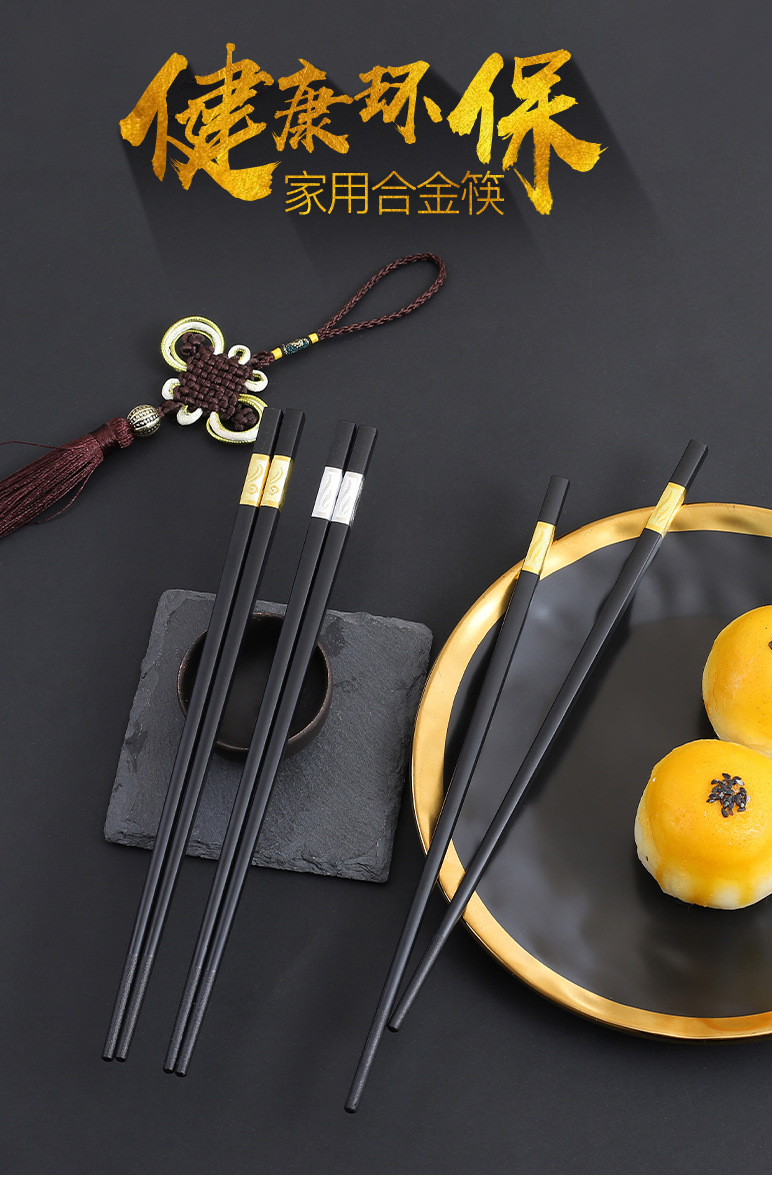 10双高档合金筷子家庭一人一筷家用级防滑耐高温酒店餐具快子