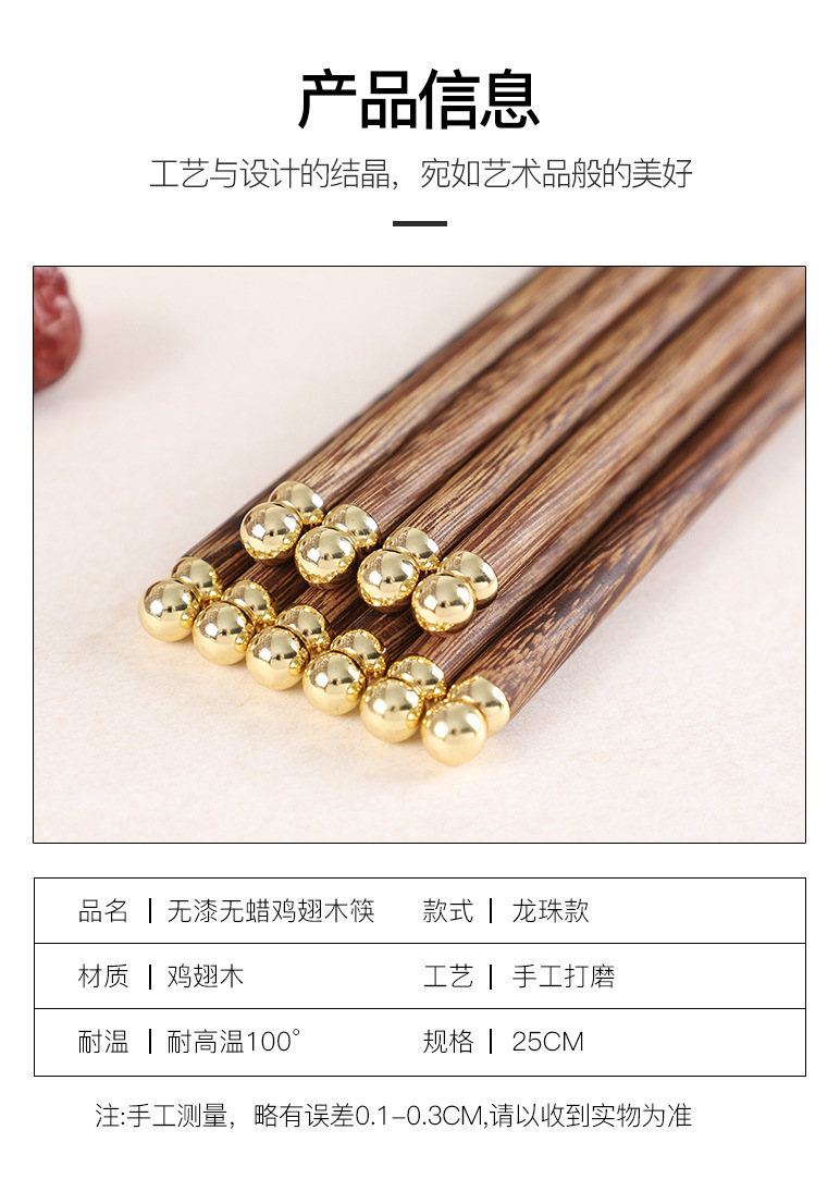 高档龙珠无漆无蜡防霉鸡翅木筷子油炸商用餐饮天然实木筷子刻字定