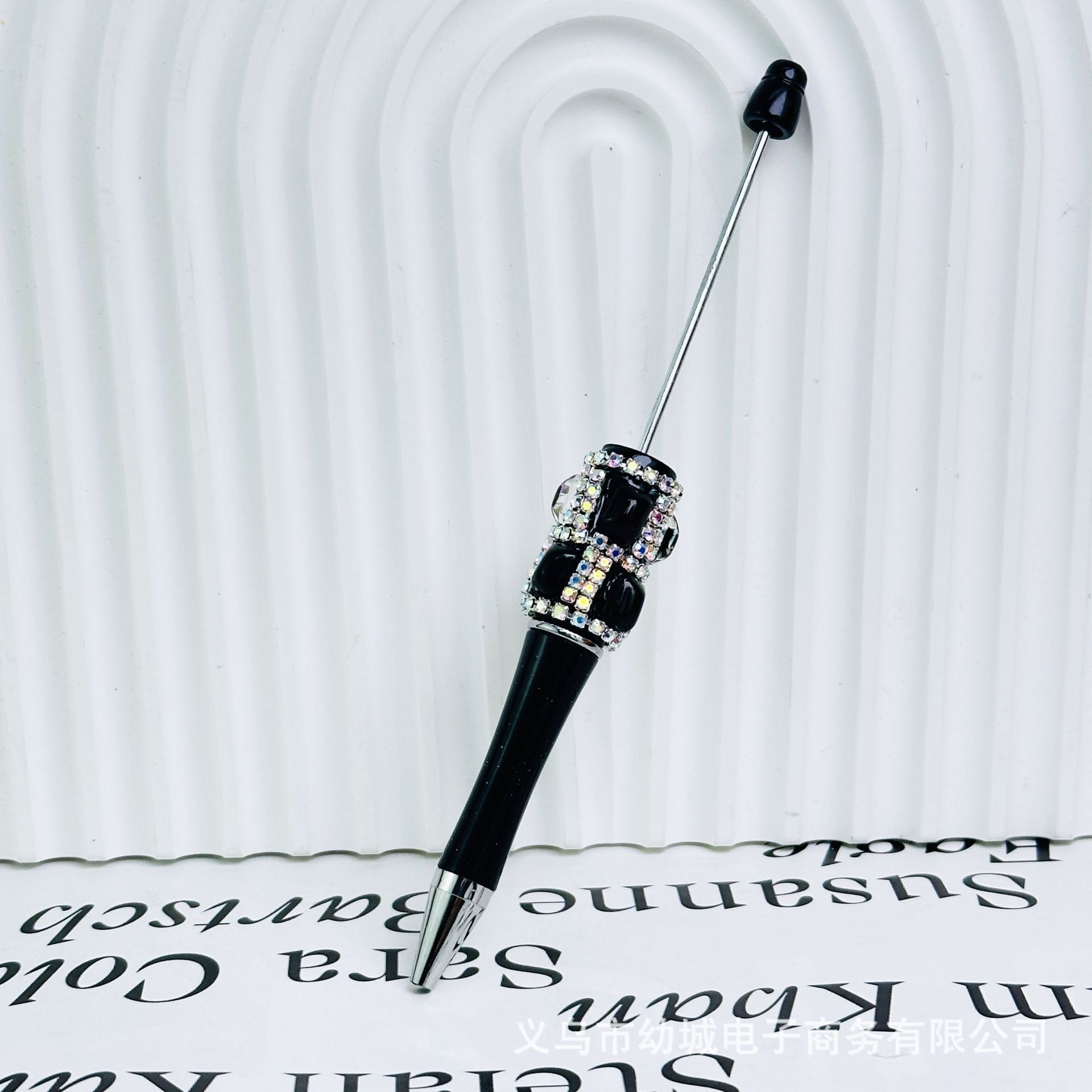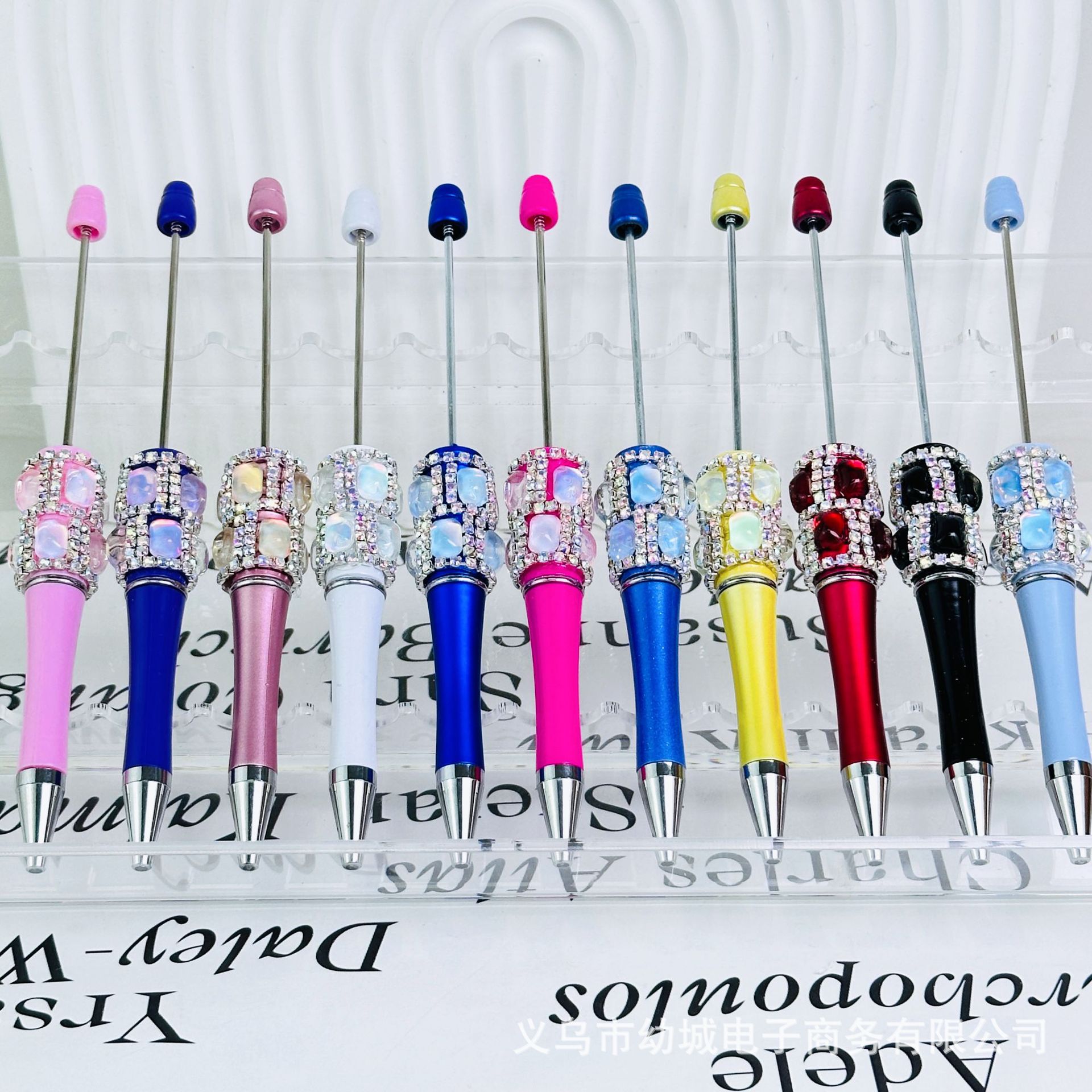创意DIY亮钻串珠笔塑料串珠圆珠笔手工贴包钻串珠笔 旋动现货批发
