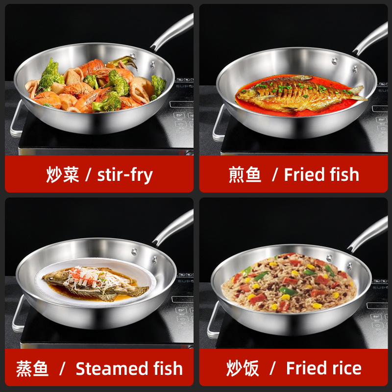 厂家直销炒锅家用304食品级不锈钢锅无涂层礼品批发电磁炉炒菜锅