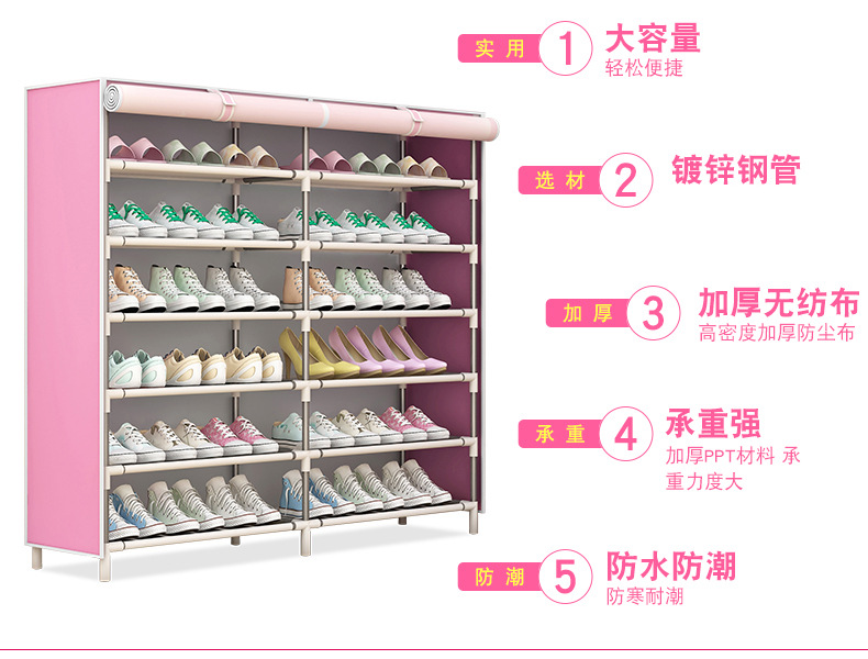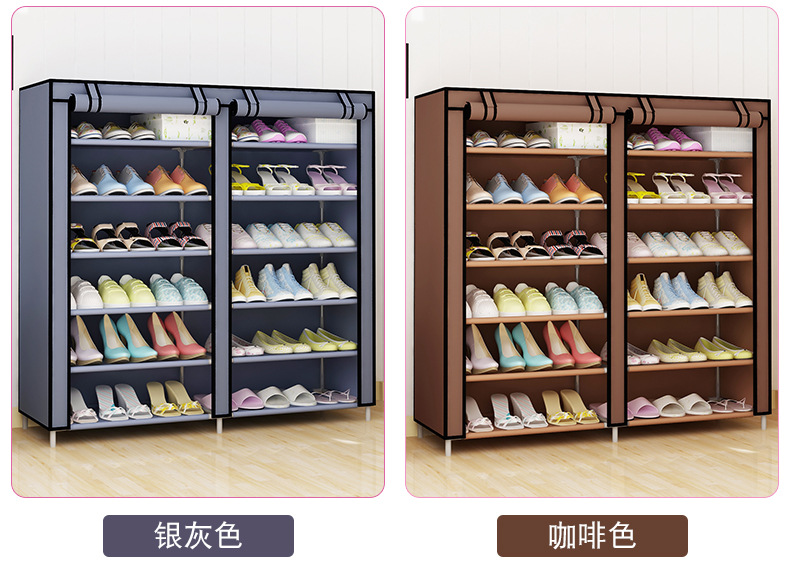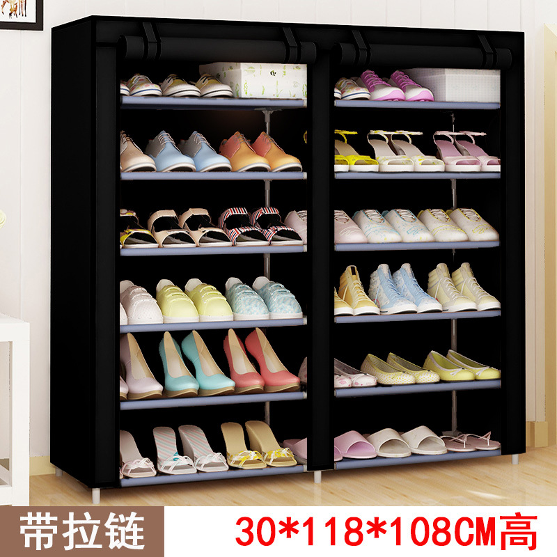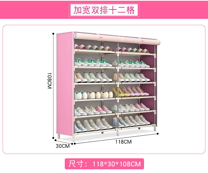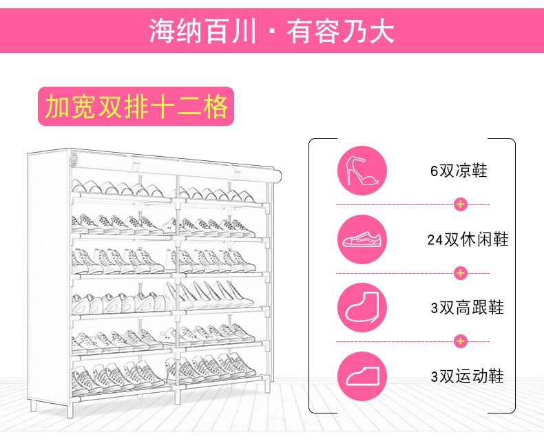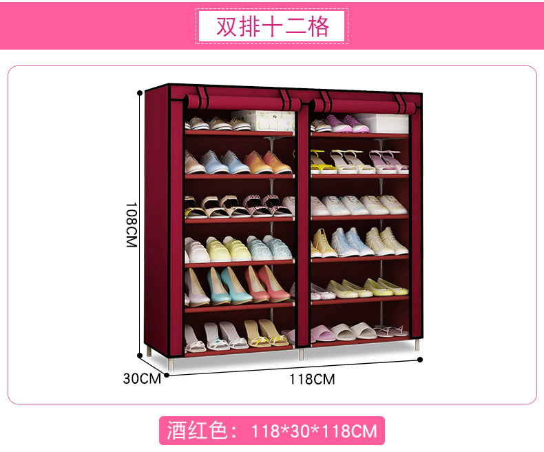 雅锐凡简易鞋柜双排12格收纳柜防尘带拉链租房家用鞋架无纺布鞋柜