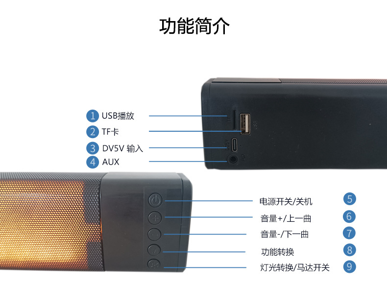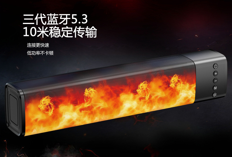 2024跨境新款 火焰长条声霸音箱 蓝牙音箱家用桌面 无线音响