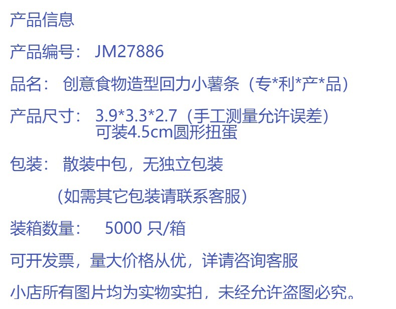 粤佳智趣 卡通可爱食物造型回力薯条小玩具车儿童节 电玩城小礼品