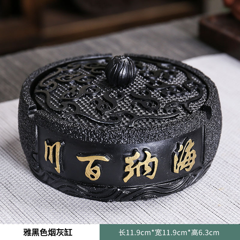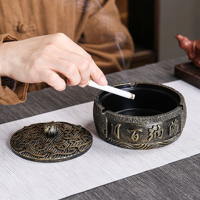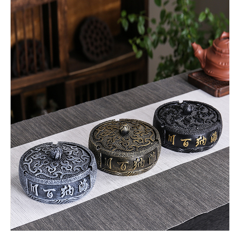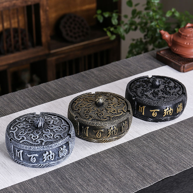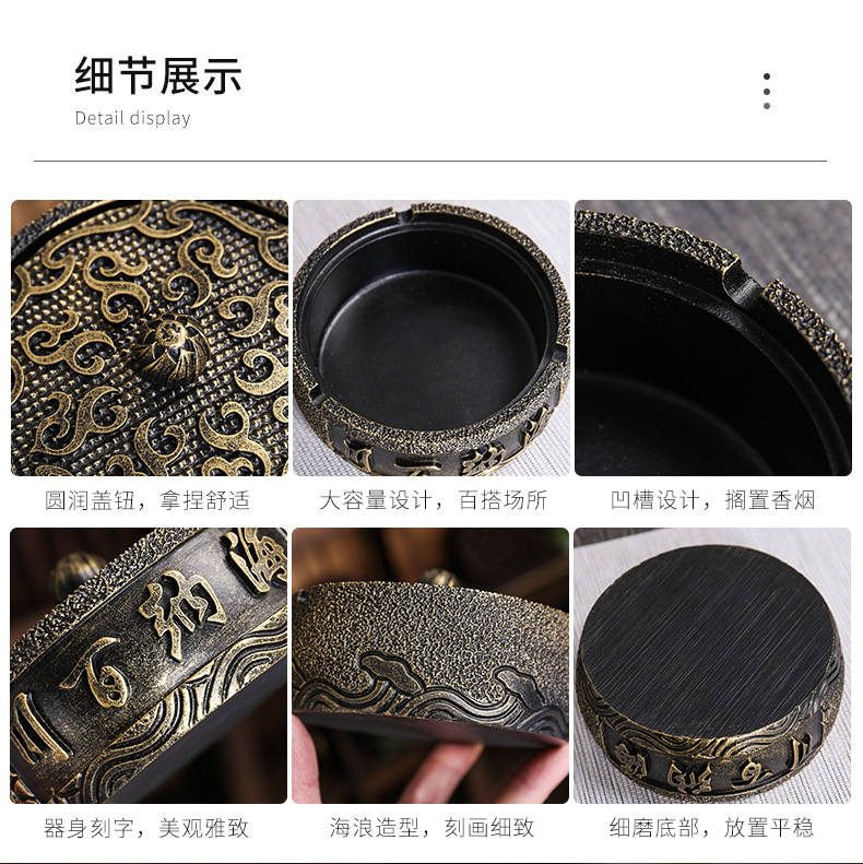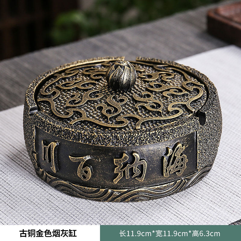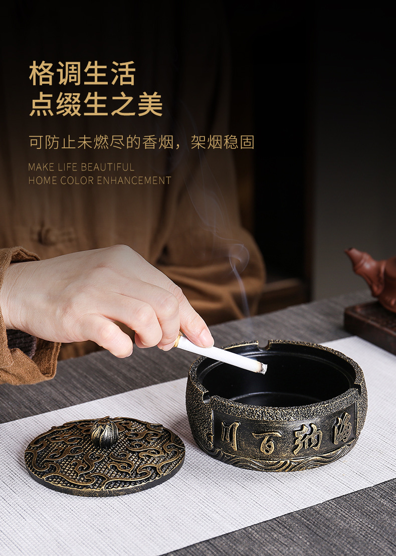 创意个性多功能烟灰缸大号复古中式家用潮流客厅带盖防飞烟缸摆件