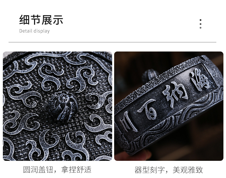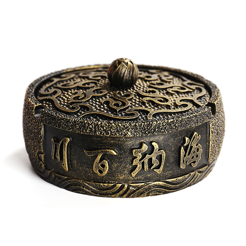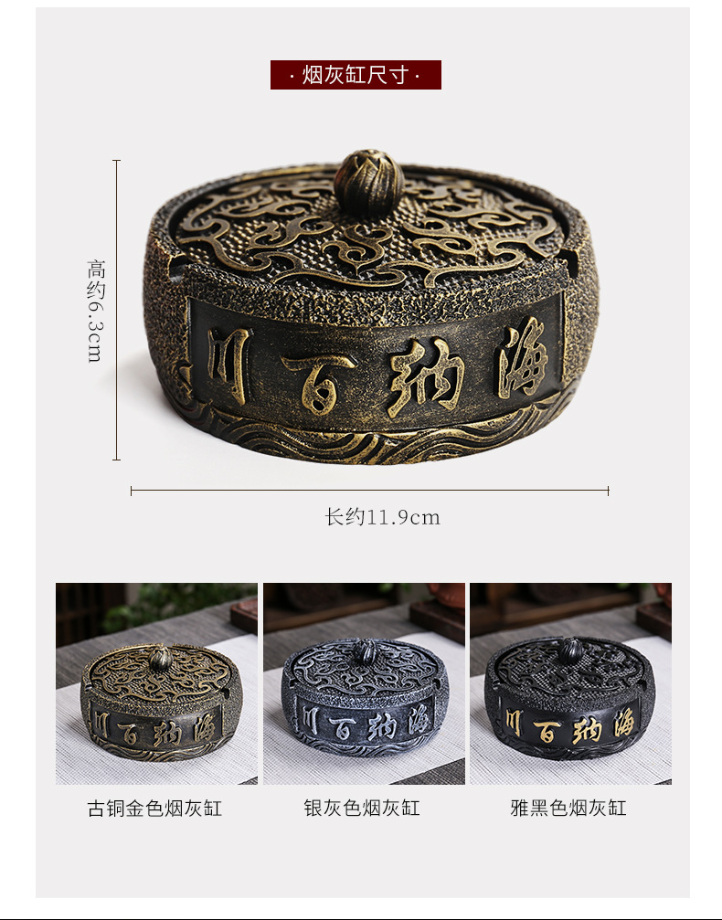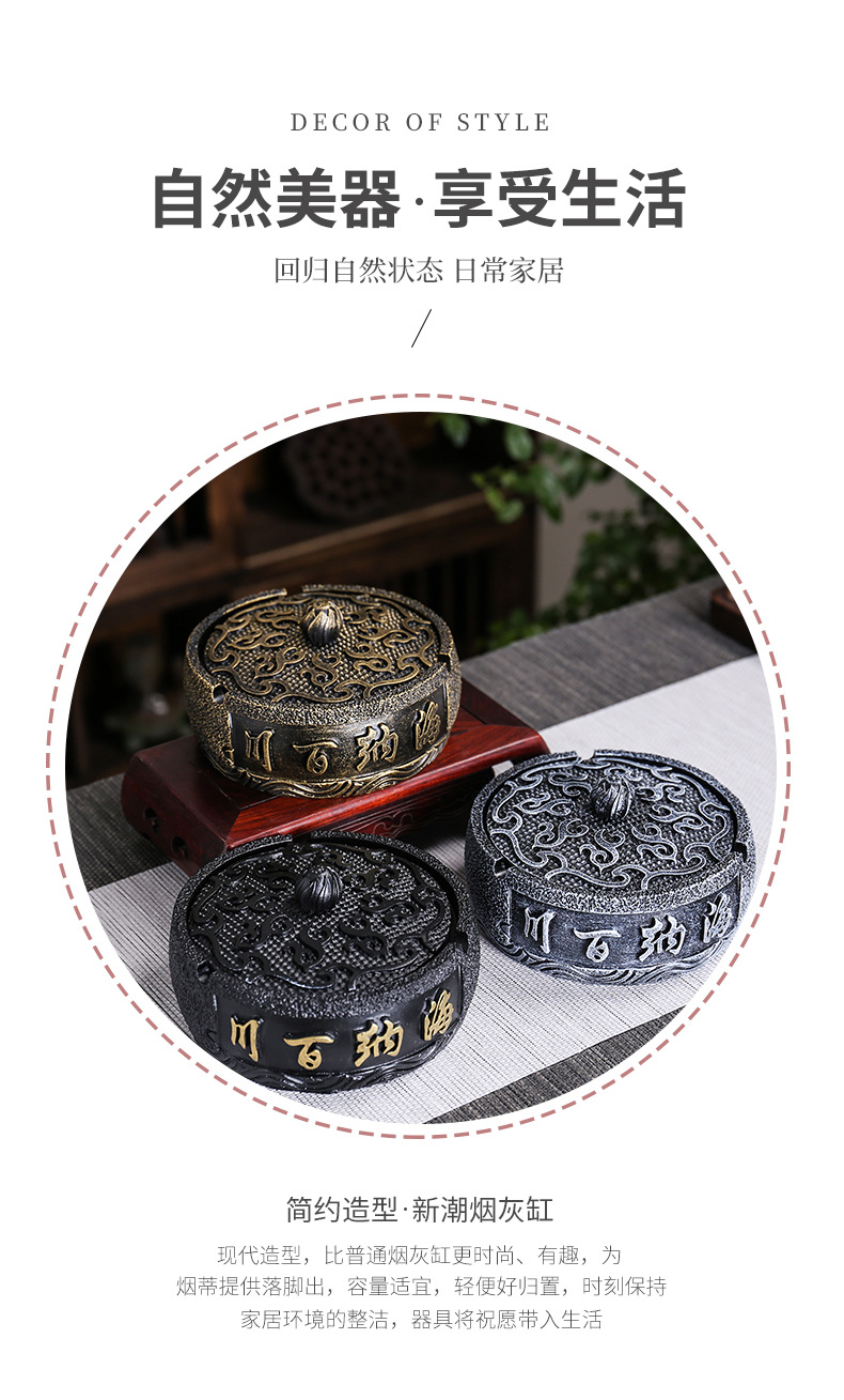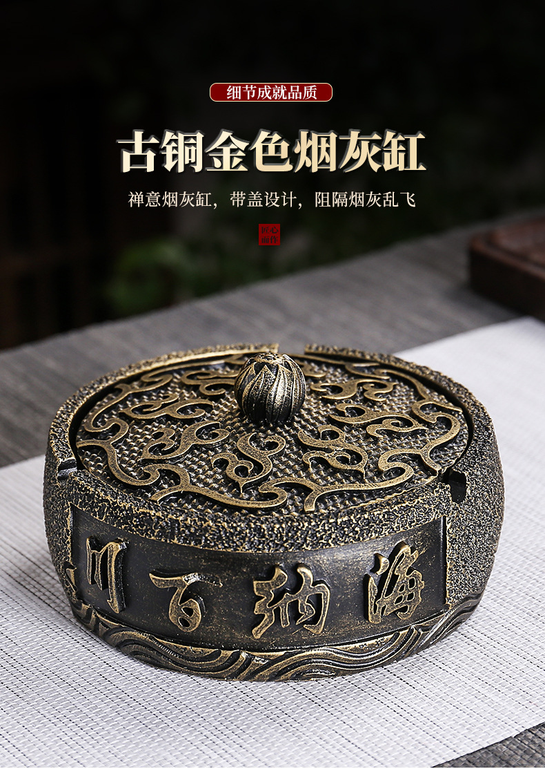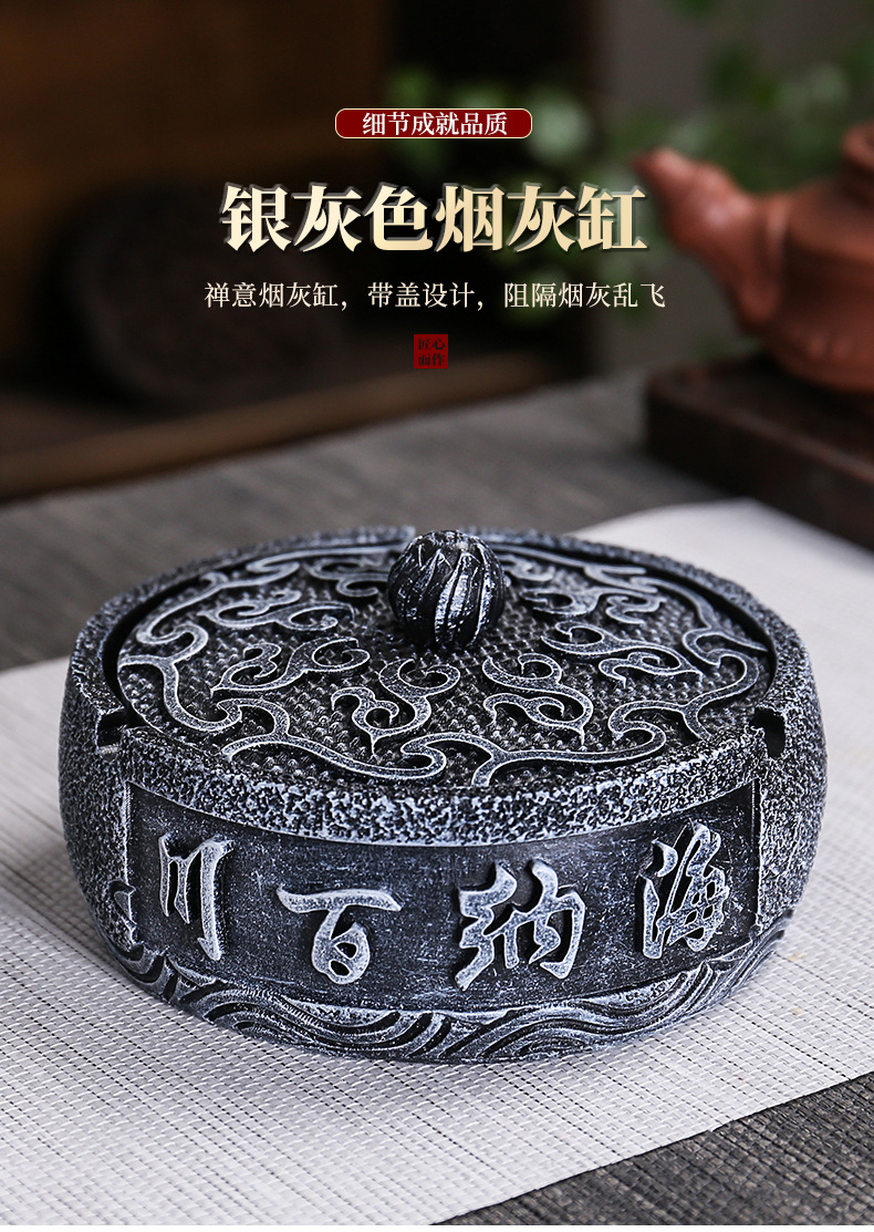 创意个性多功能烟灰缸大号复古中式家用潮流客厅带盖防飞烟缸摆件