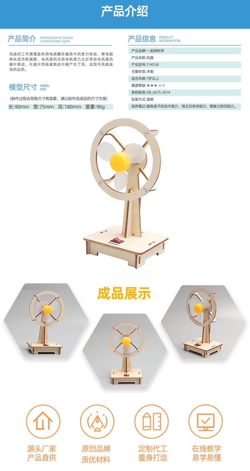儿童创意DIY木制小风扇小学生科技小制作益智手工拼装玩具材料包