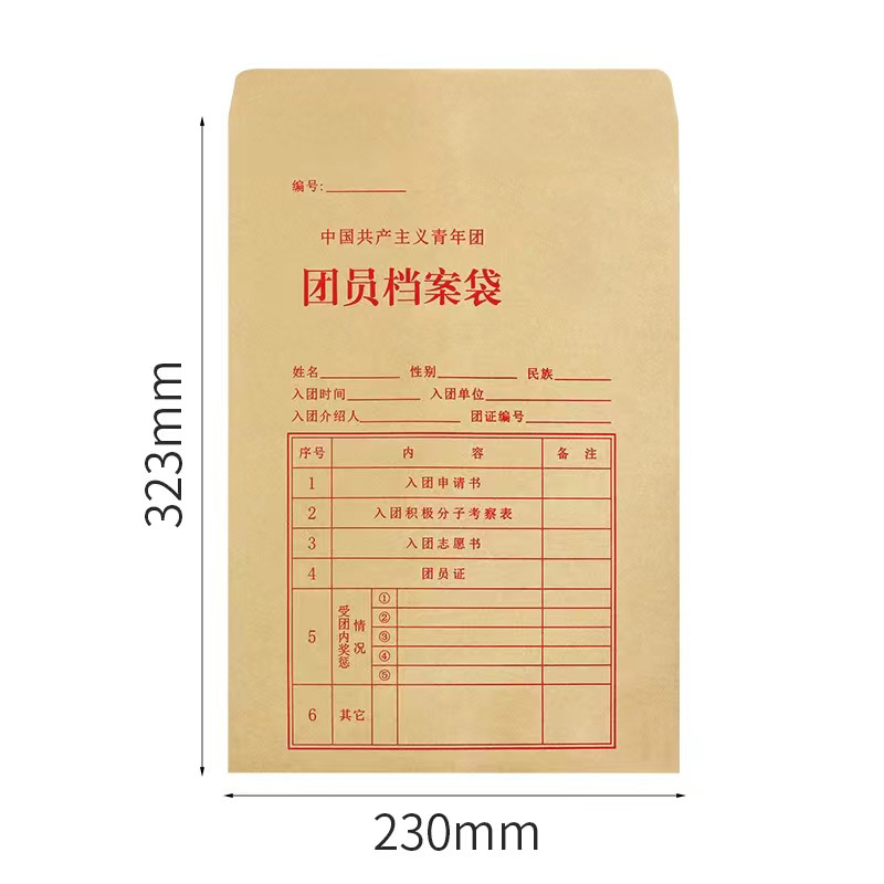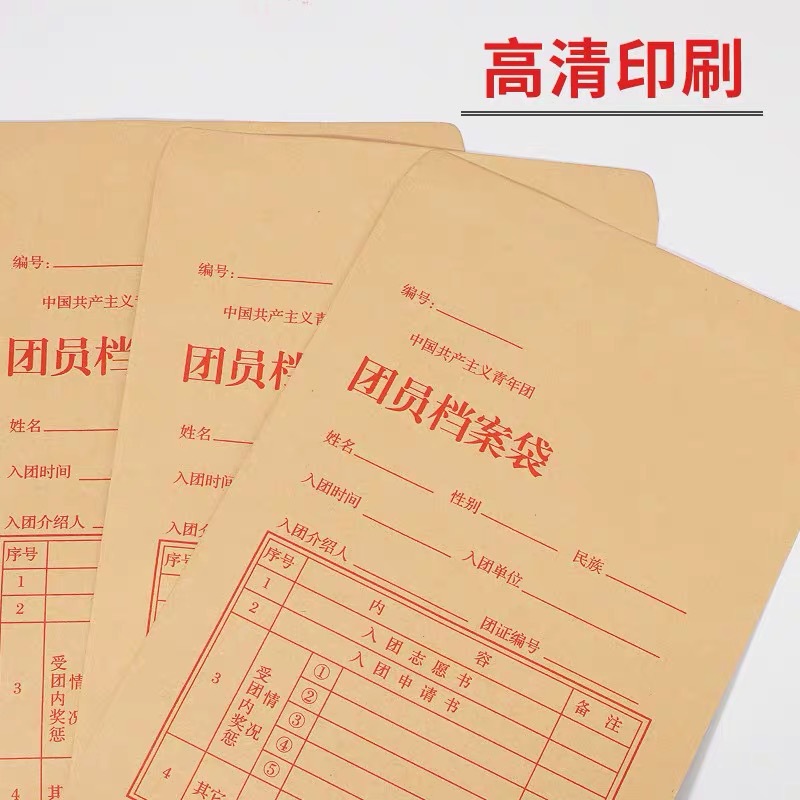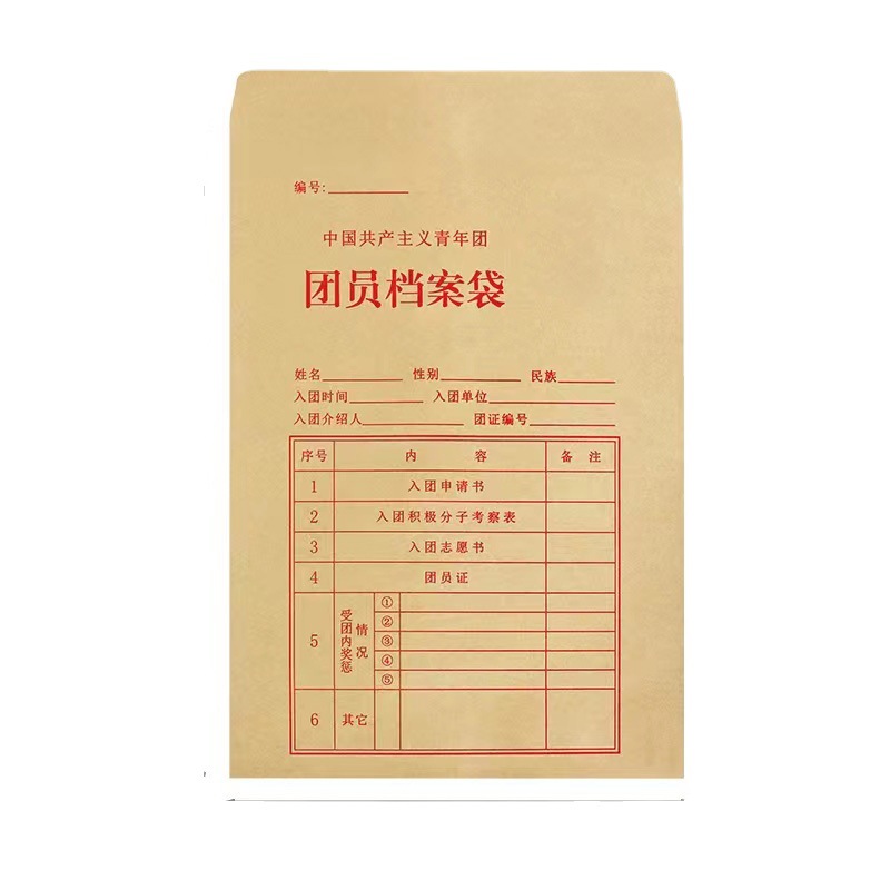 团员专用档案袋120g加厚牛皮纸文件资料袋大号学生共青团籍收纳袋