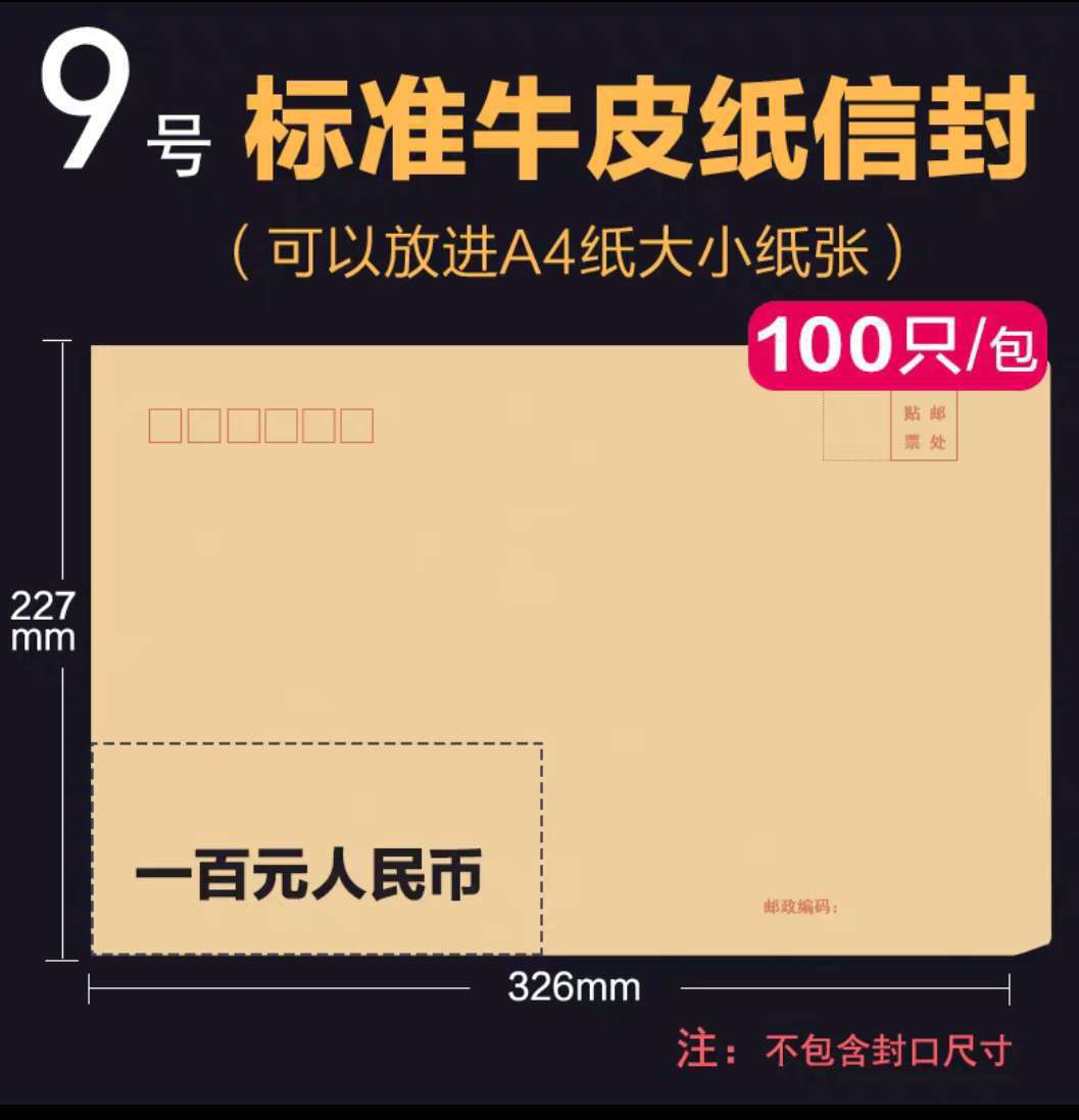 批发A4信封9号牛皮纸信封空白120g加厚大号黄色信封袋邮局标准