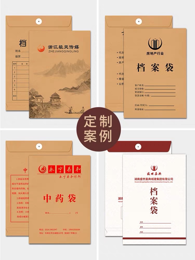 定制来图来样牛皮纸档案袋加厚A4纸投标文件收纳病例袋档案袋