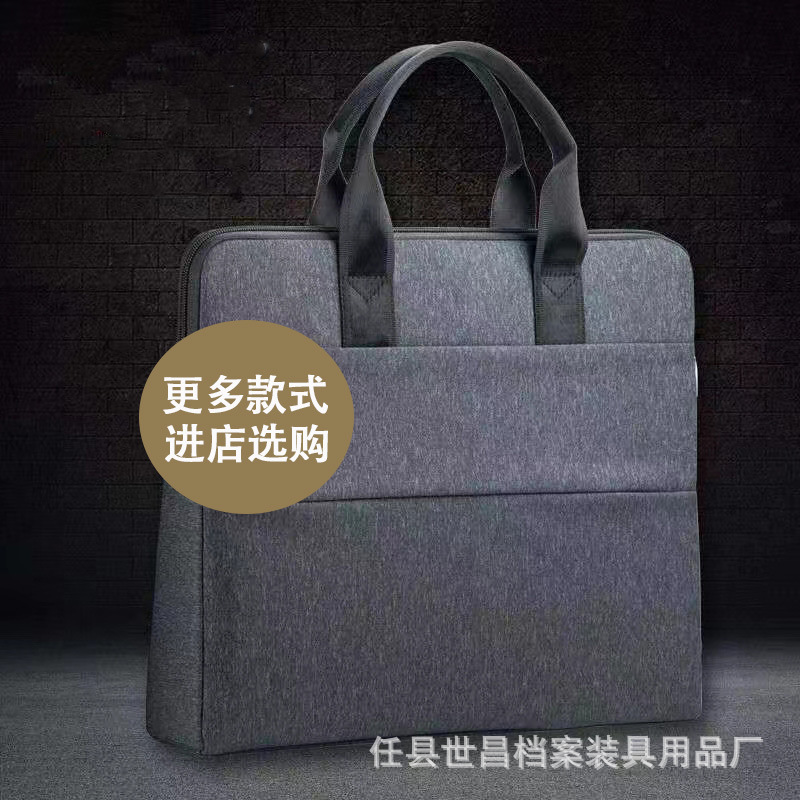 手提牛津布文件袋帆布防水文件包男手提加厚公文包商务双层会议包