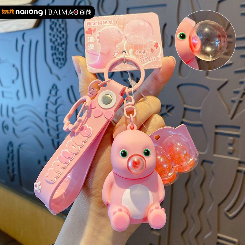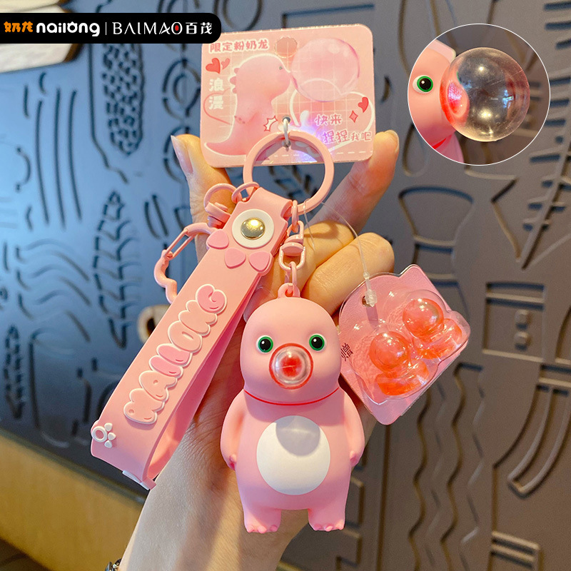 正版解压吹泡泡奶龙钥匙扣女男可爱精致公仔减压玩具书包挂件礼品