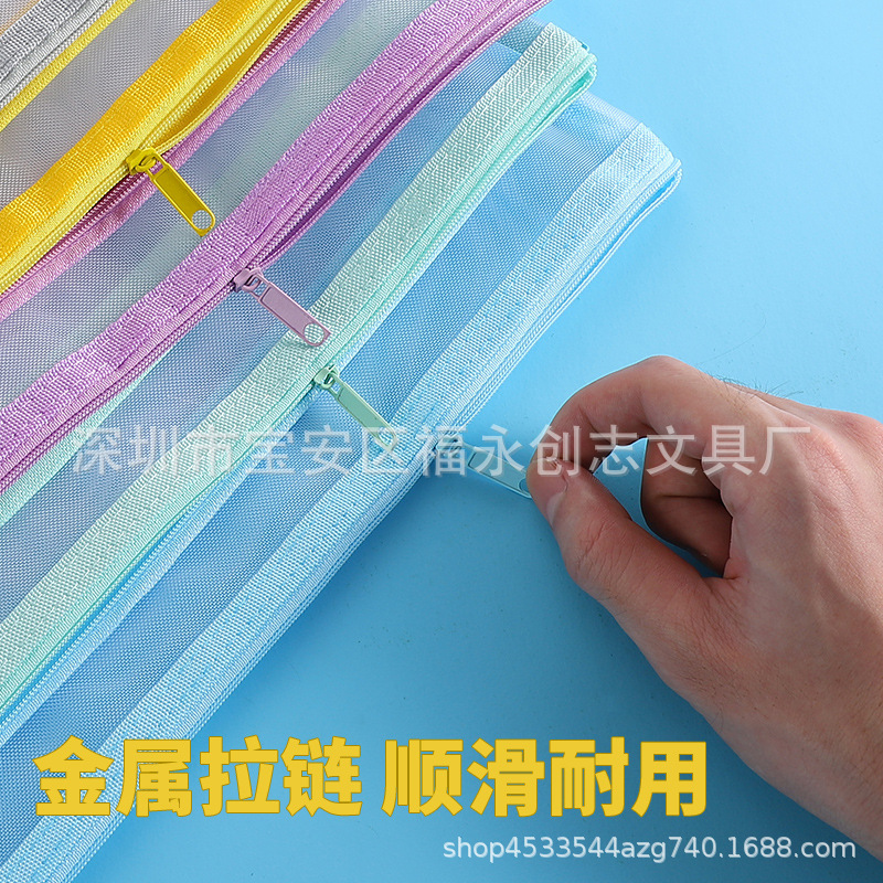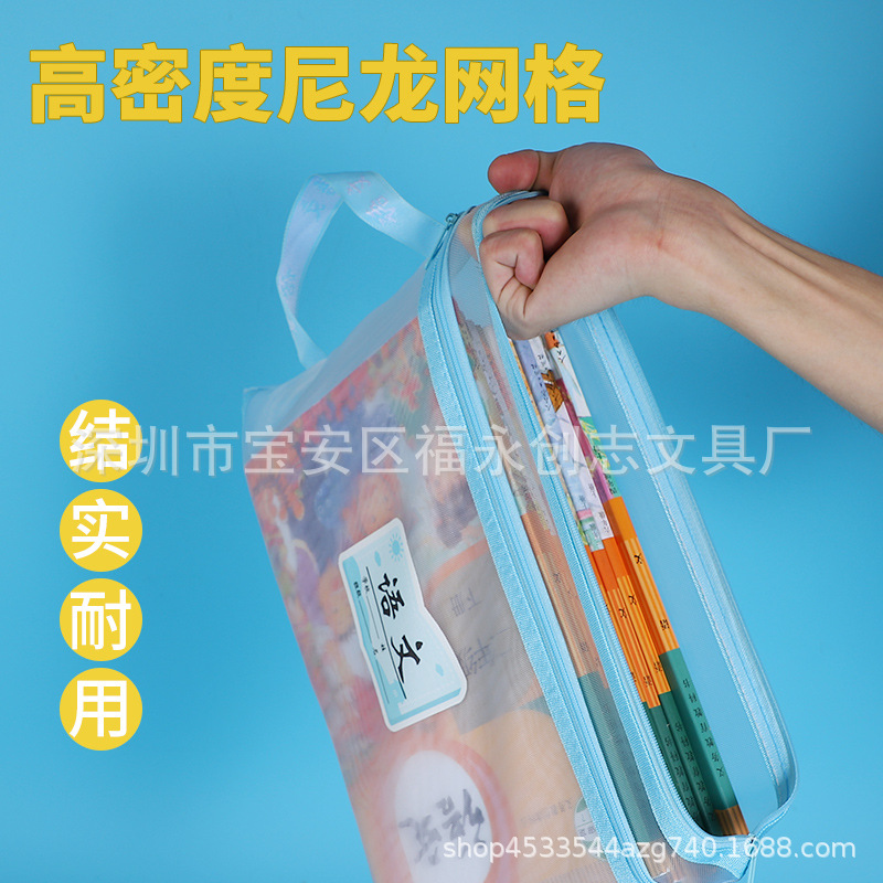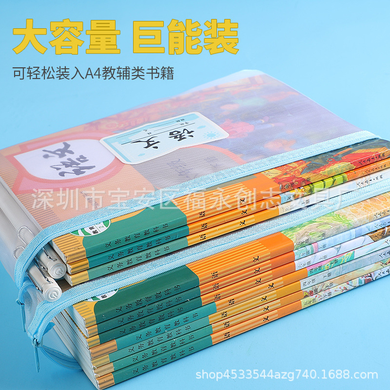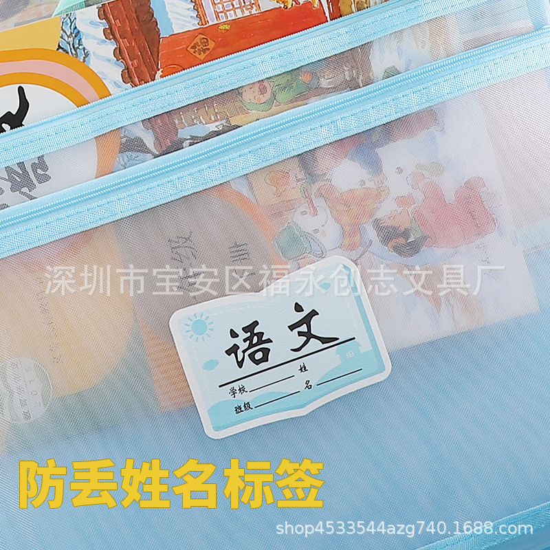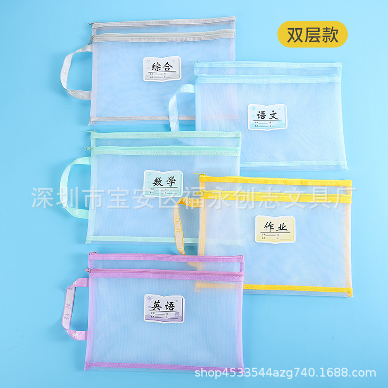 新款A4尼龙学生科目文件袋学科科目分类袋双层透明拉链收纳袋