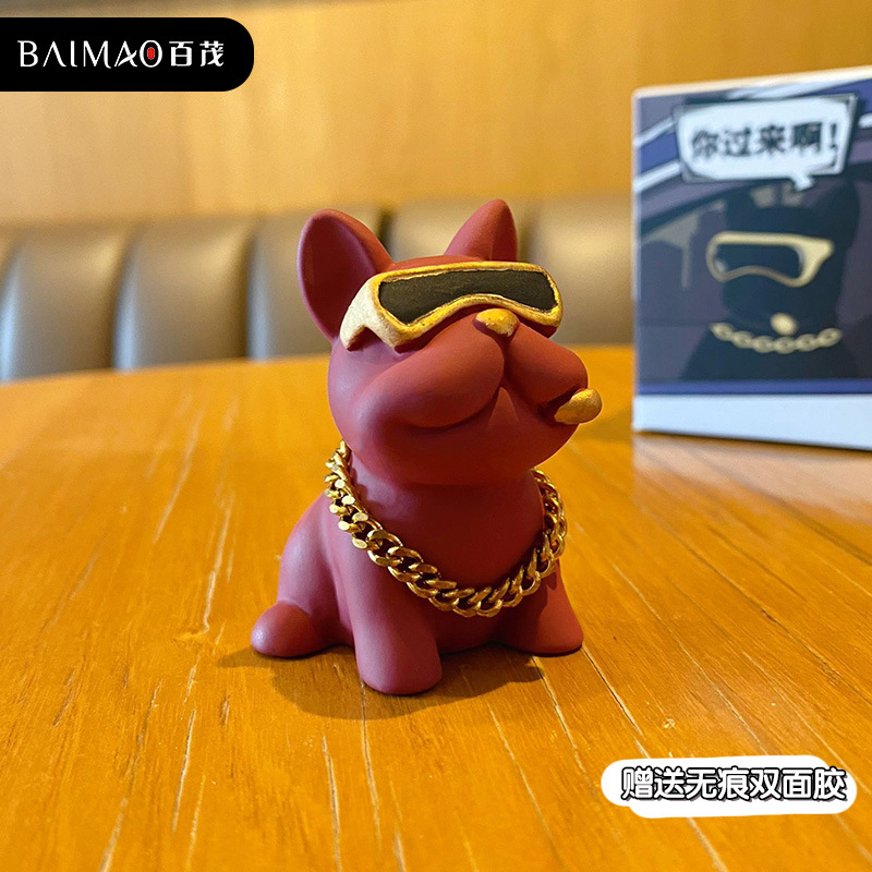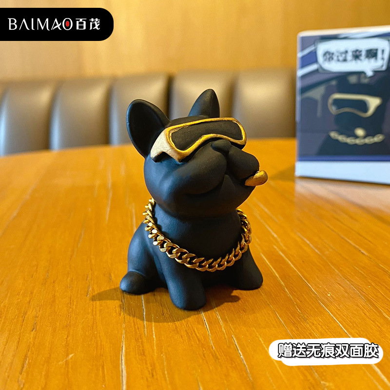 百茂原创潮酷斗牛犬树脂摆件创意潮流墨镜狗车载摆件家居桌面装饰