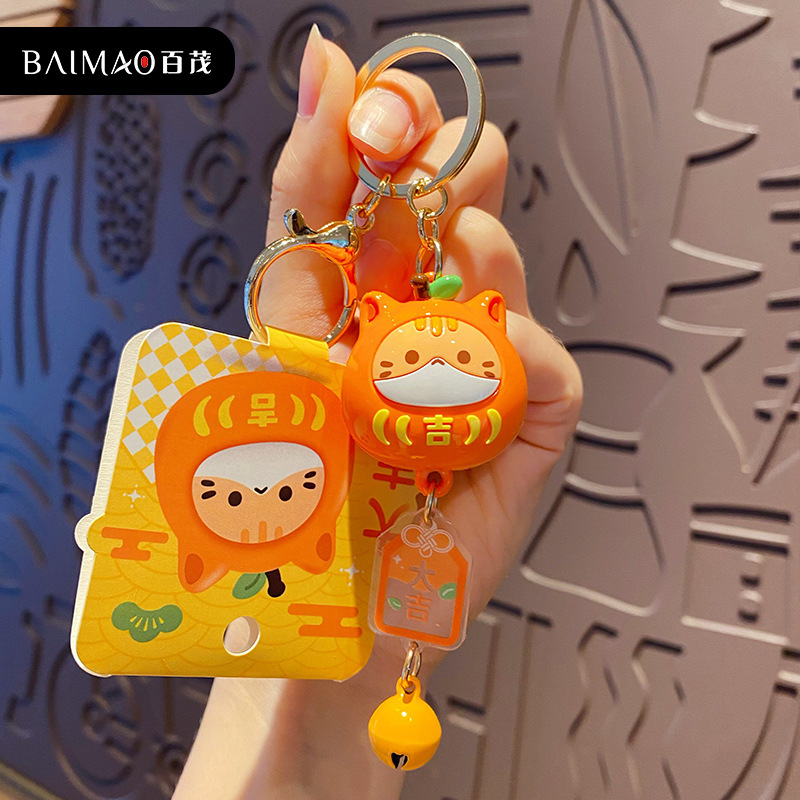 正版可可猫达摩系列钥匙扣女可爱精致猫猫公仔情侣钥匙链书包挂件