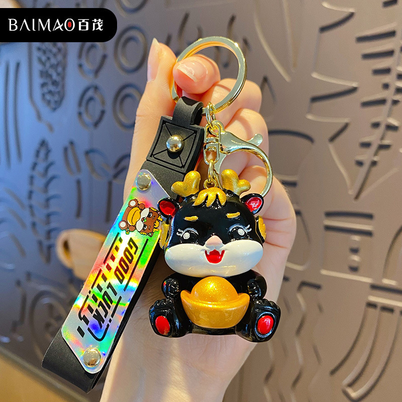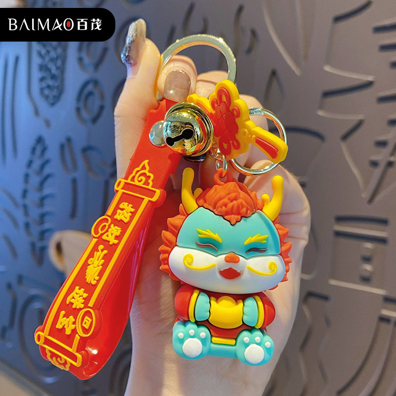 百茂正版卡通醒狮辰龙钥匙扣女可爱精致柴犬公仔钥匙链圈书包挂件