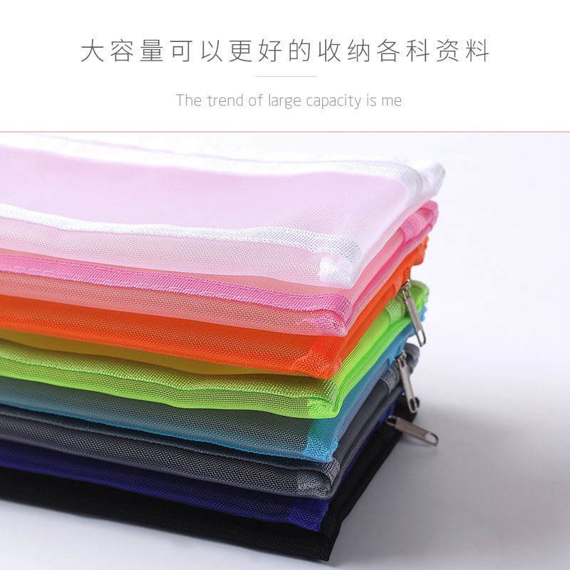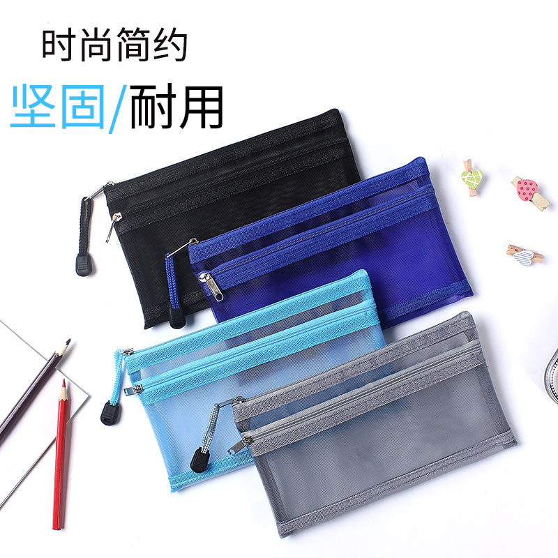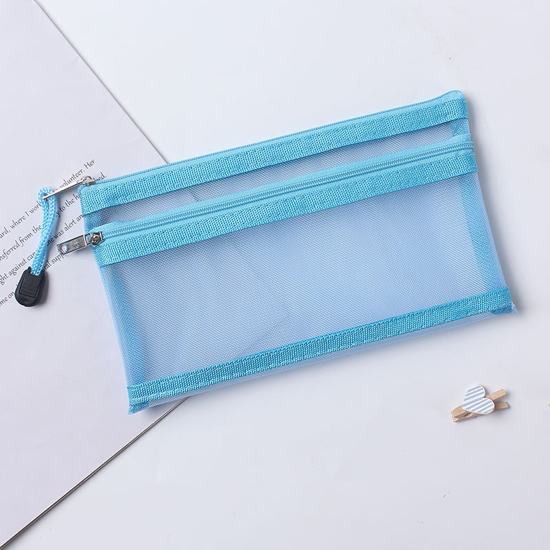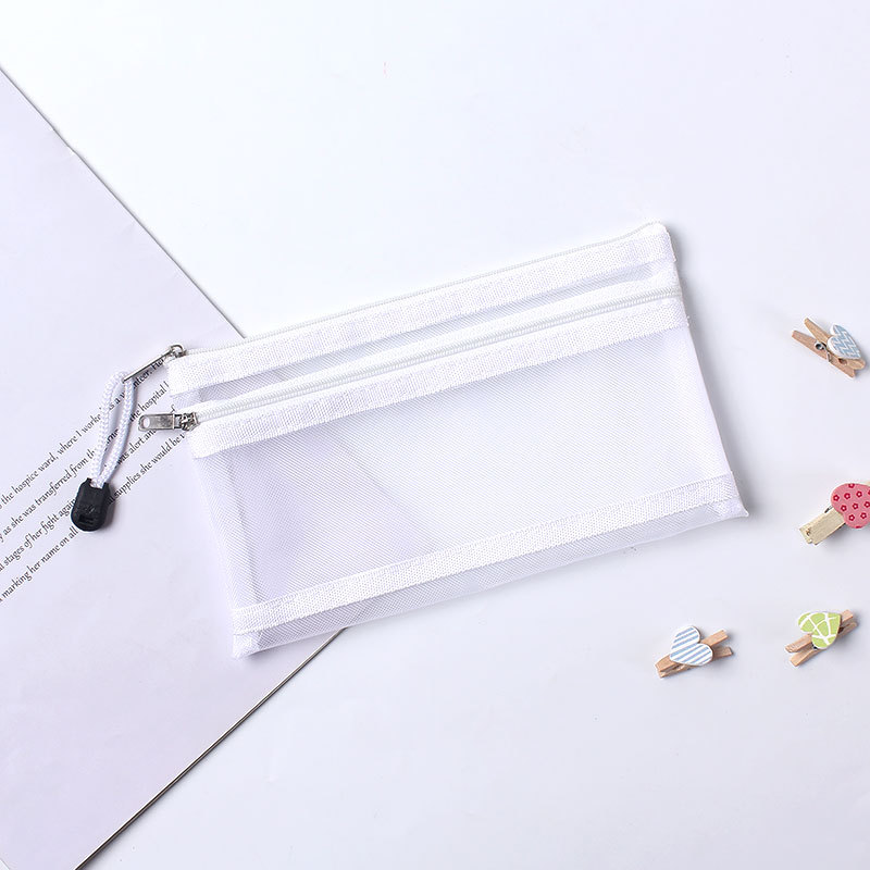 简约透明网纱双层笔袋 学生考试专用袋 便携尼龙笔袋 A6大容量