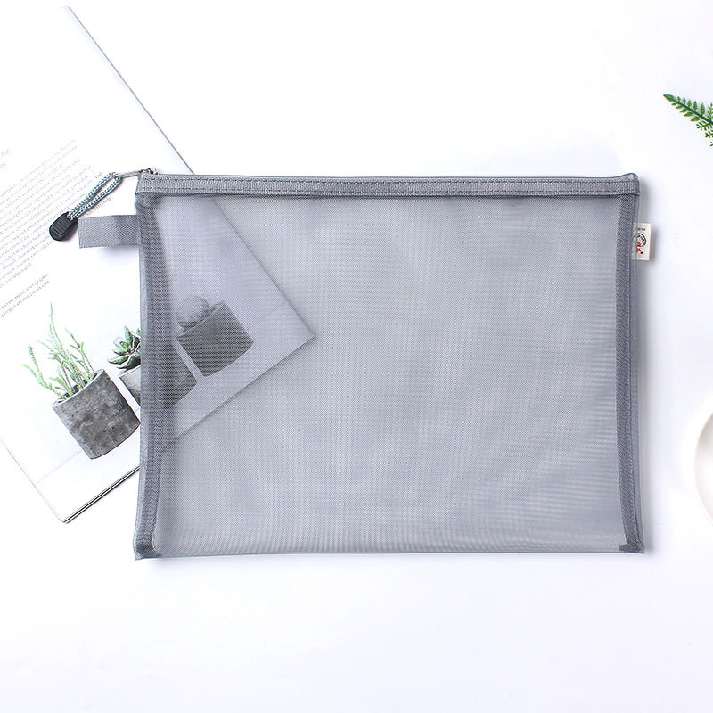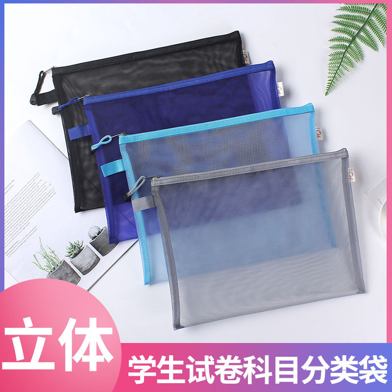 A4学生文件袋 尼龙网纱拉链袋 简约透明试卷袋 考试专用收纳袋