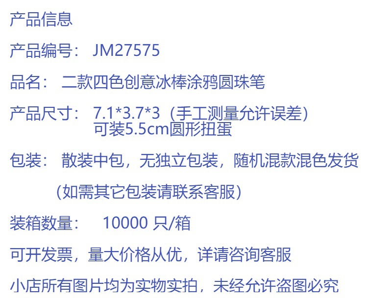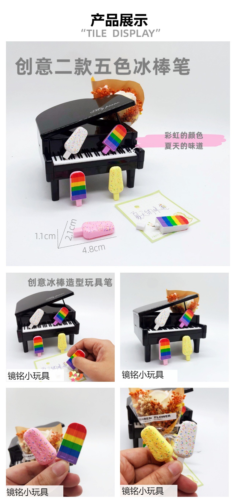 创意仿真迷你雪糕冰棒造型涂鸦玩具圆珠笔地推外贸小玩具礼品