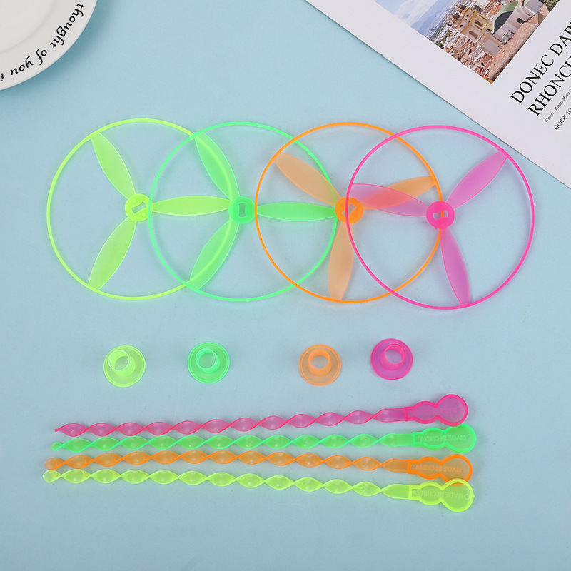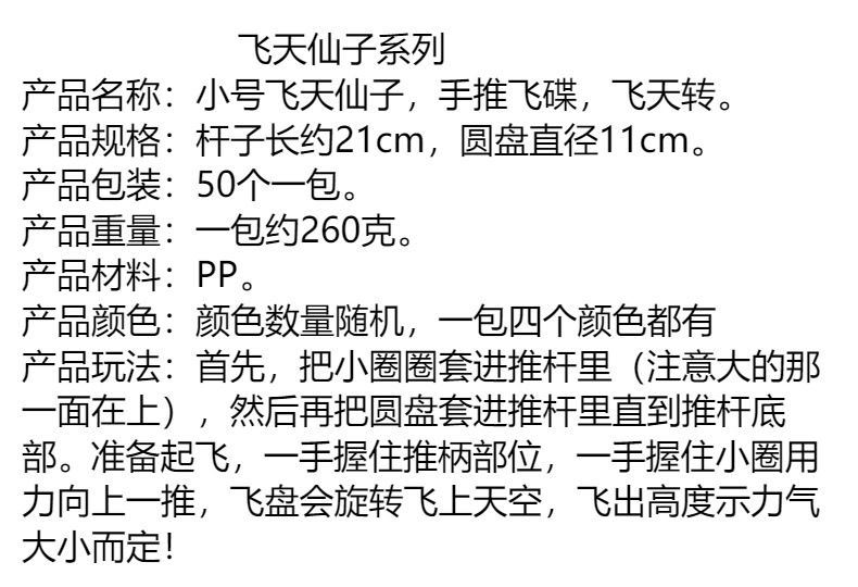 不发光飞天仙子透明款手推飞碟飞天转竹蜻蜓批发地摊夜市小玩具礼