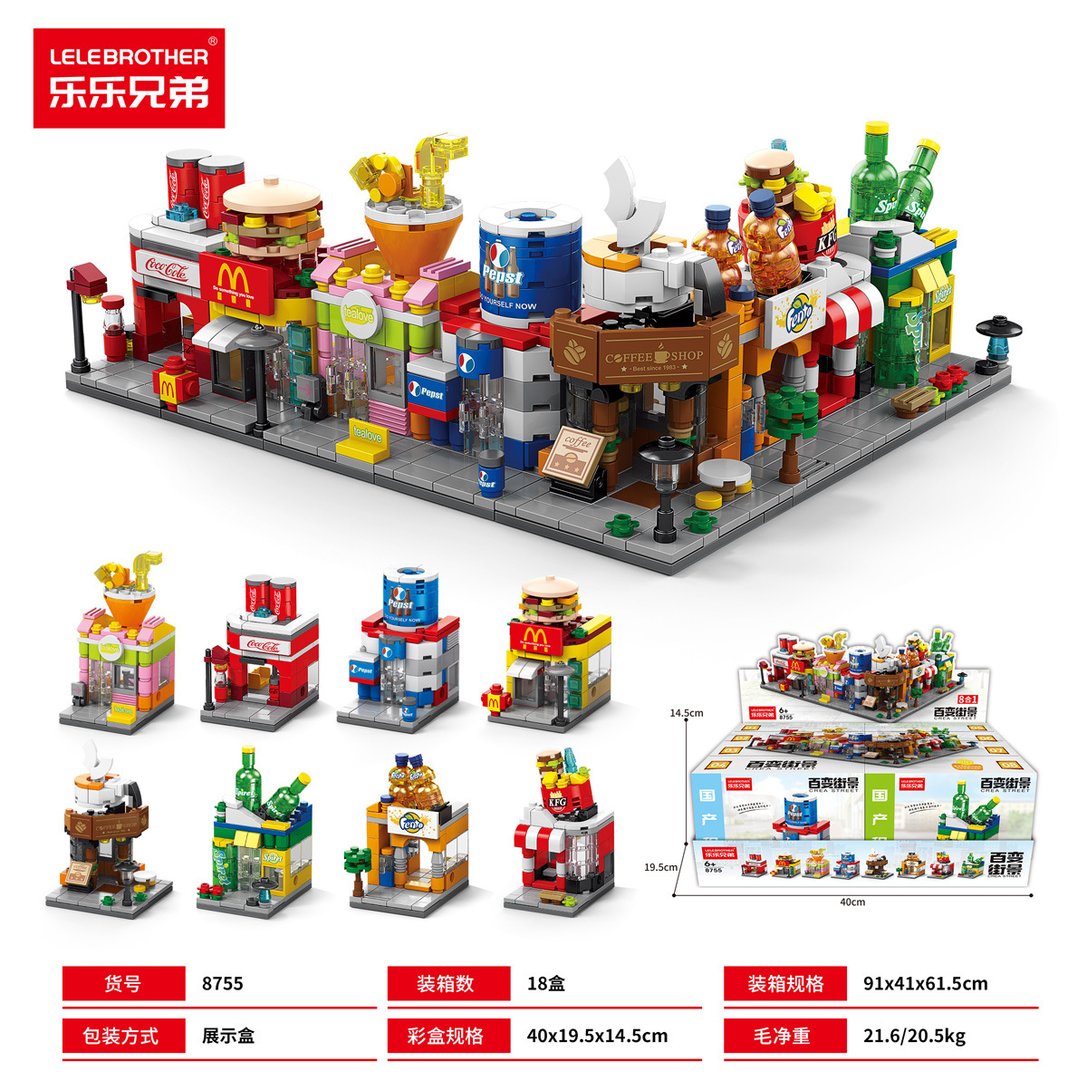【批发代发】乐乐兄弟中华美食商业街系列积木小颗粒儿童礼物生日
