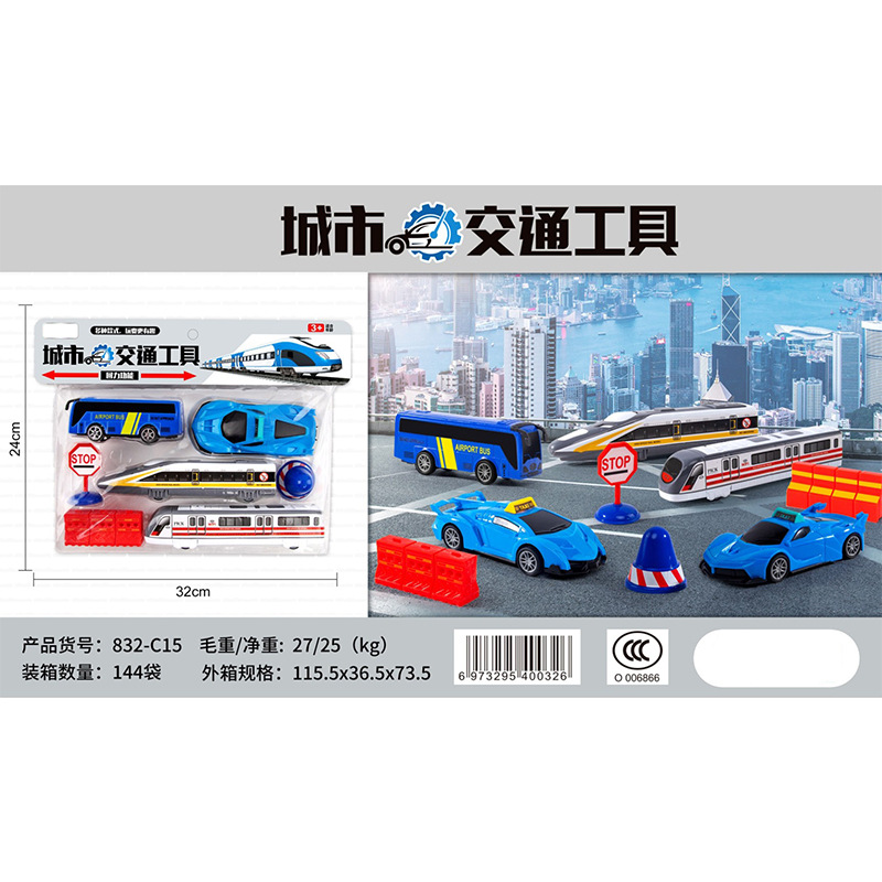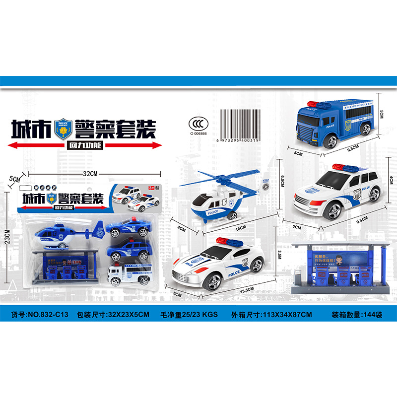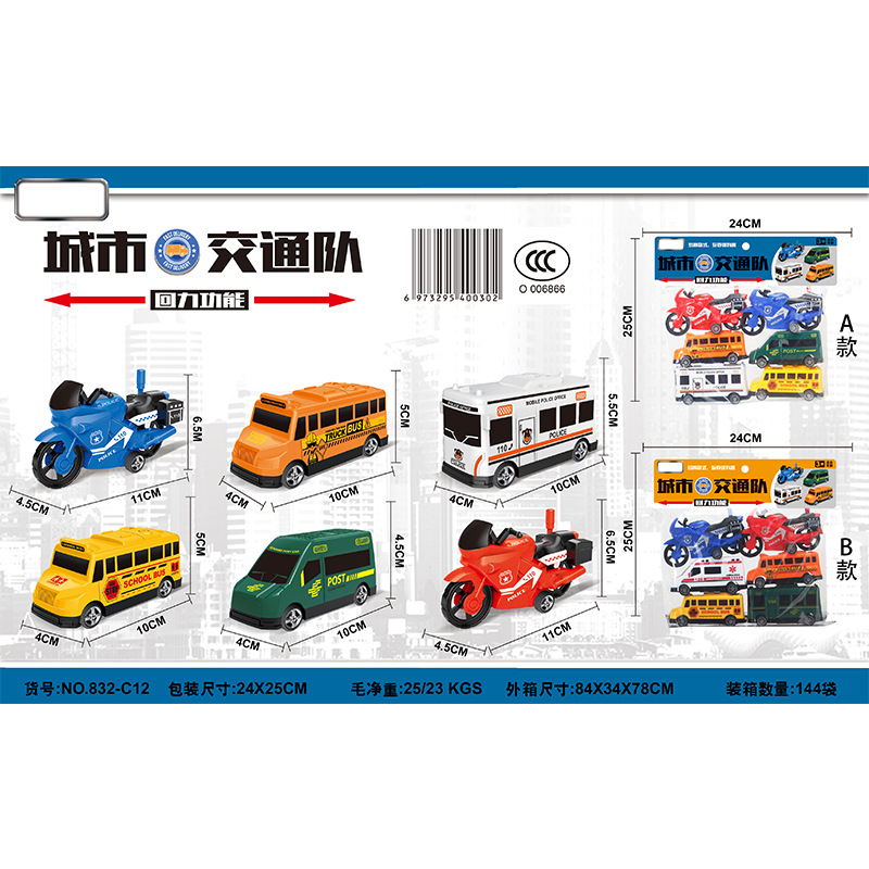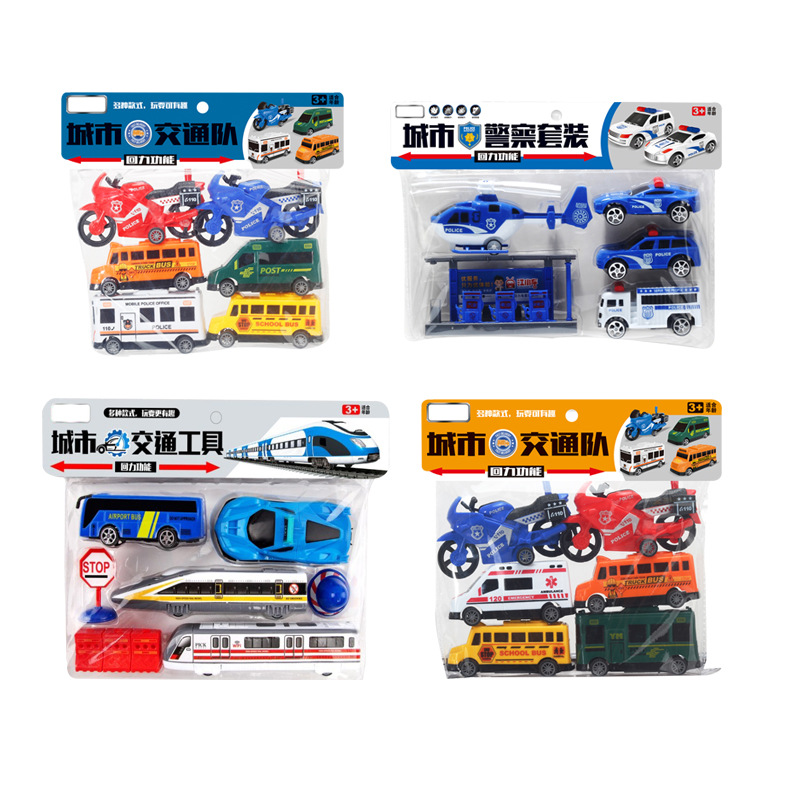 儿童卡头袋装城市小汽车回力车玩具城市消防警察飞机地摊小礼品