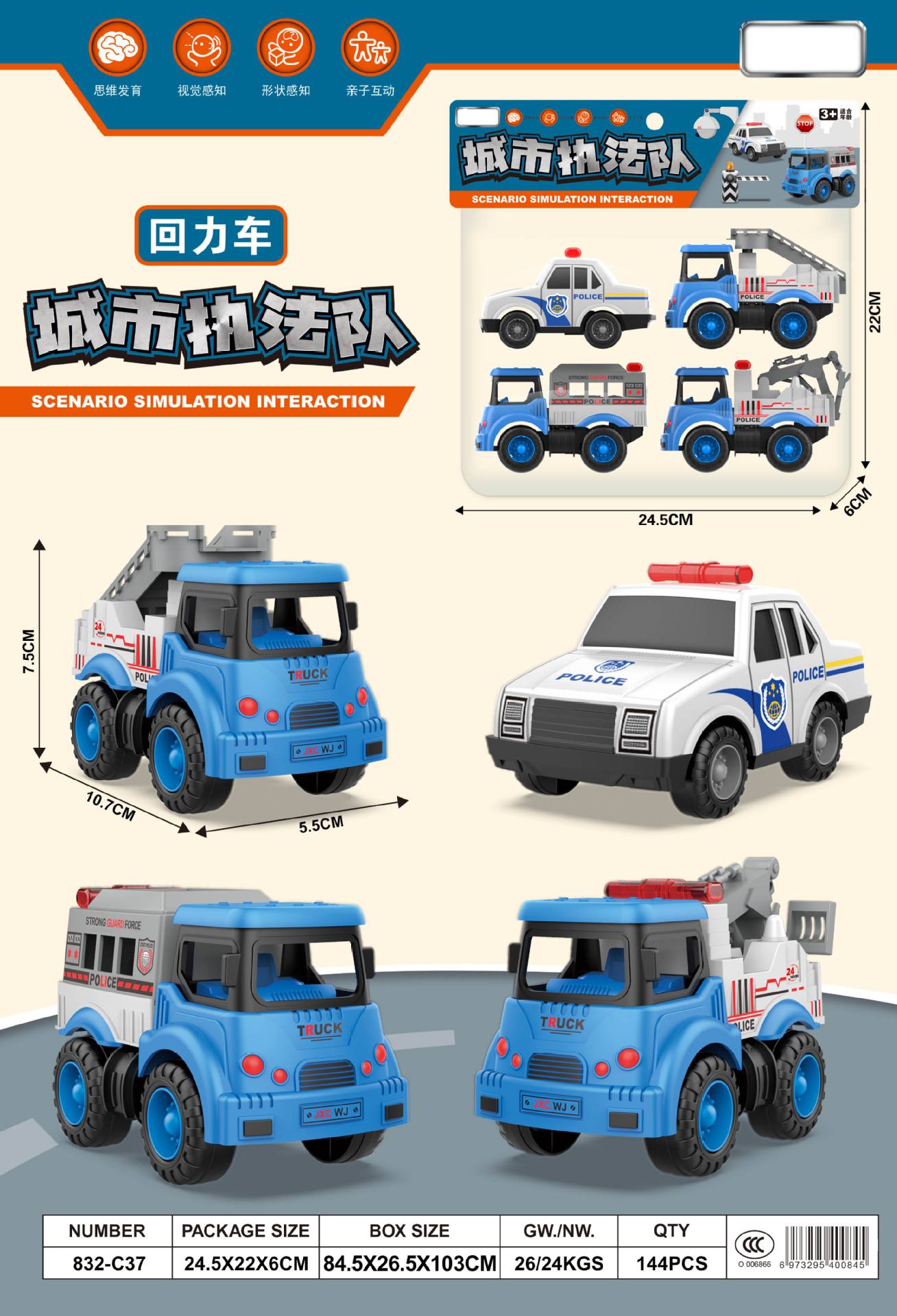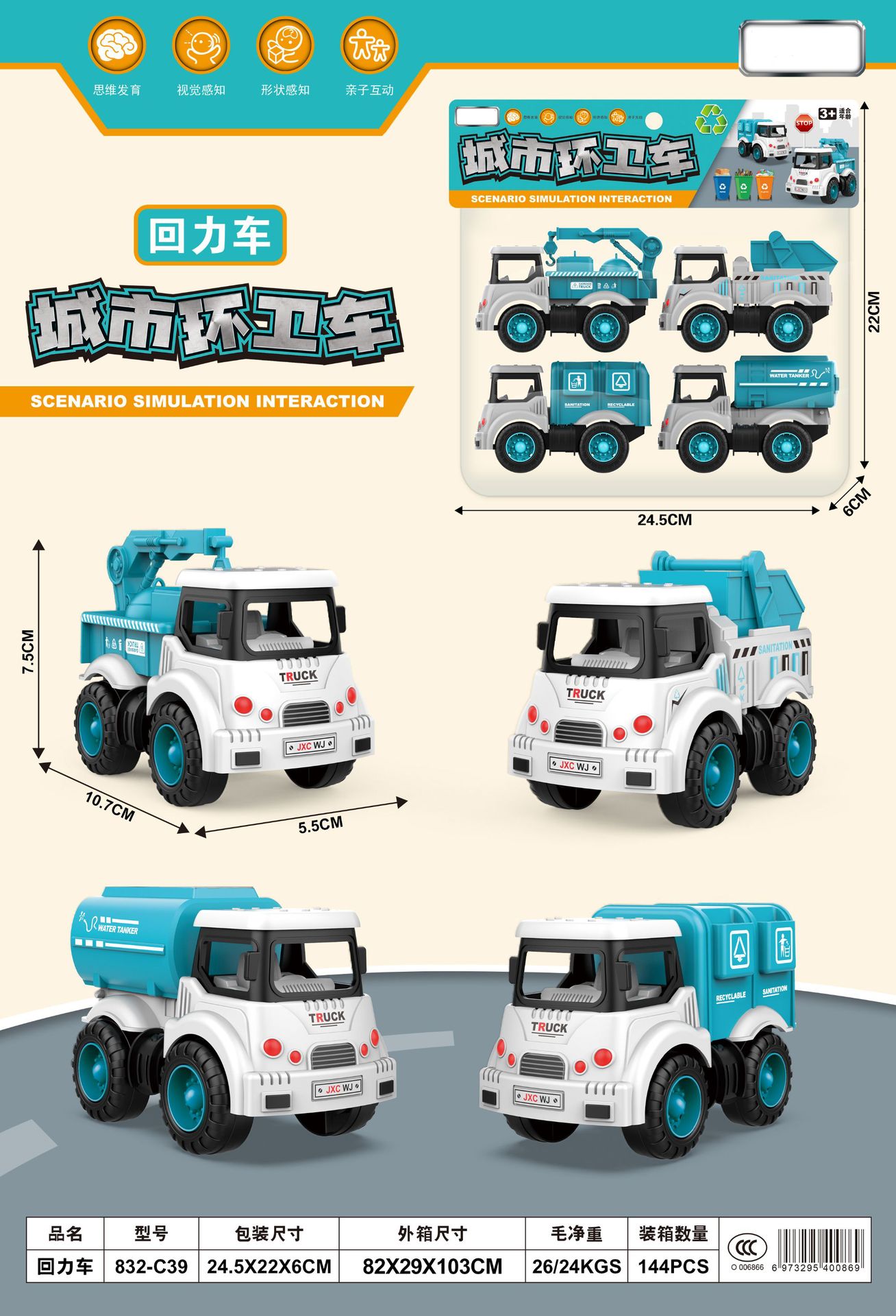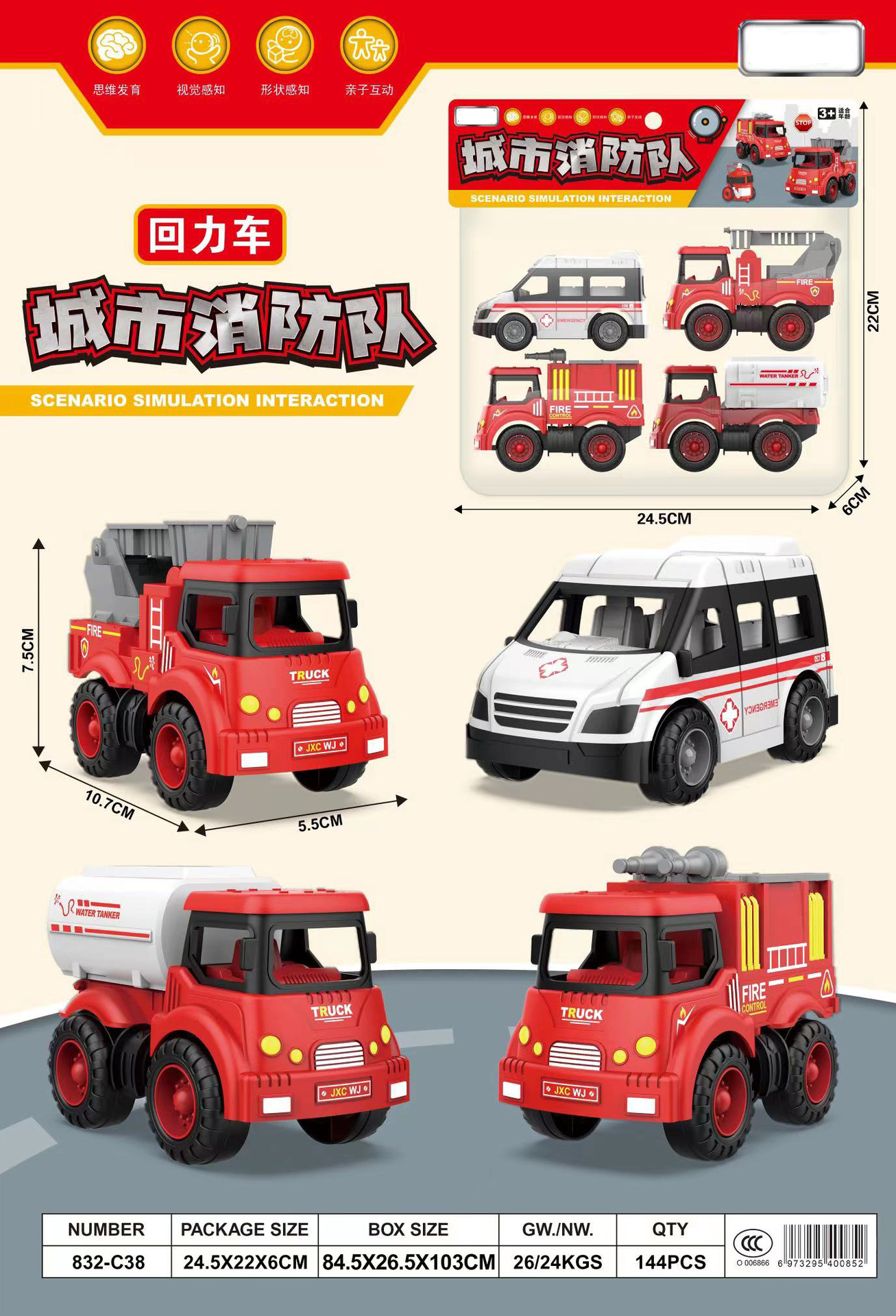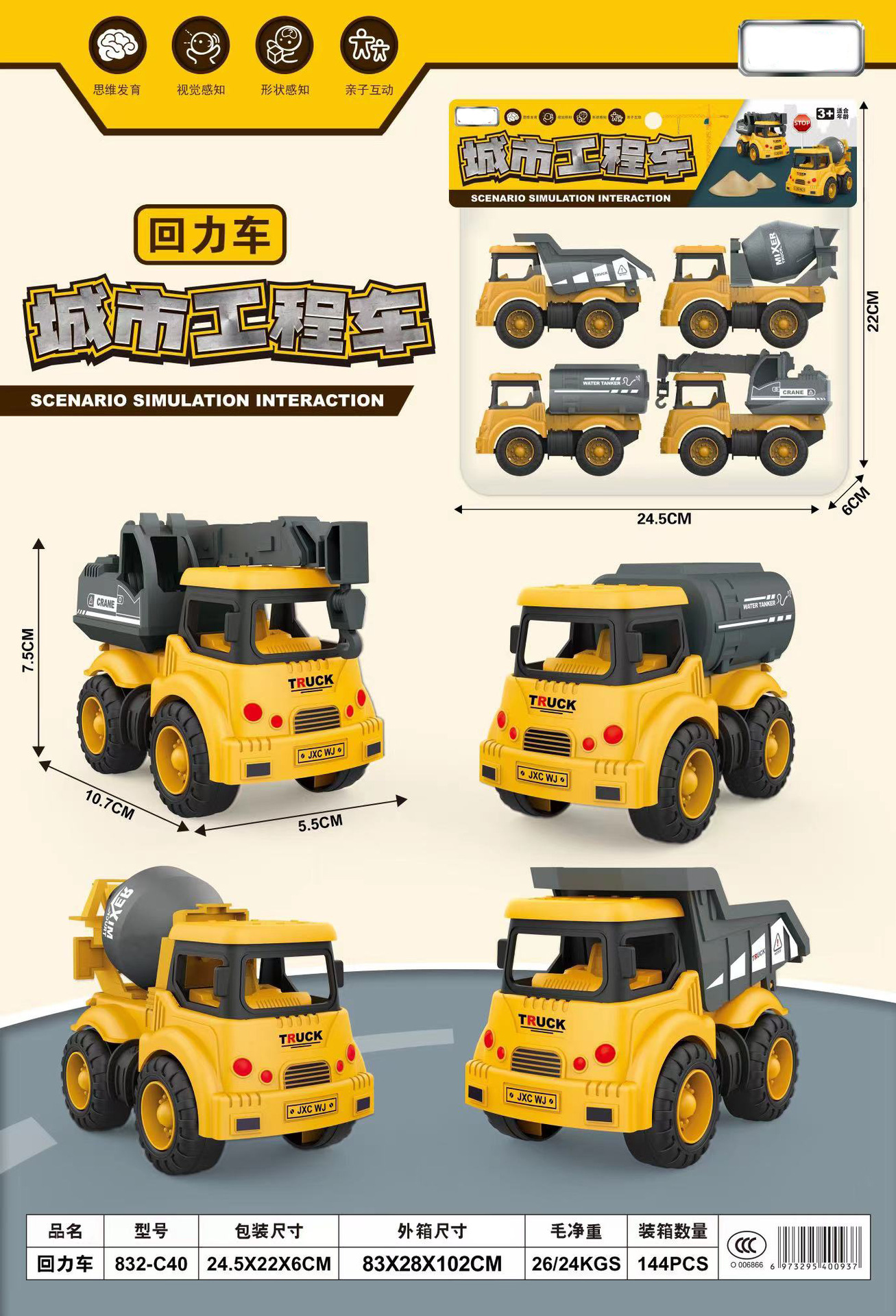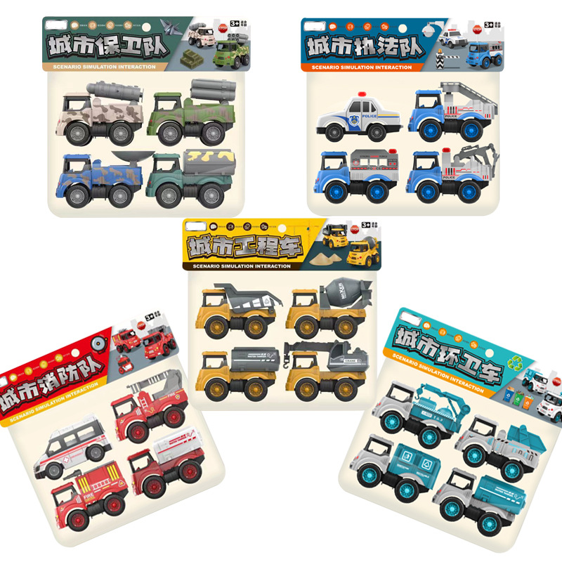 新款卡头袋装回力工程车玩具儿童卡通消防车环卫车地摊摆摊批发